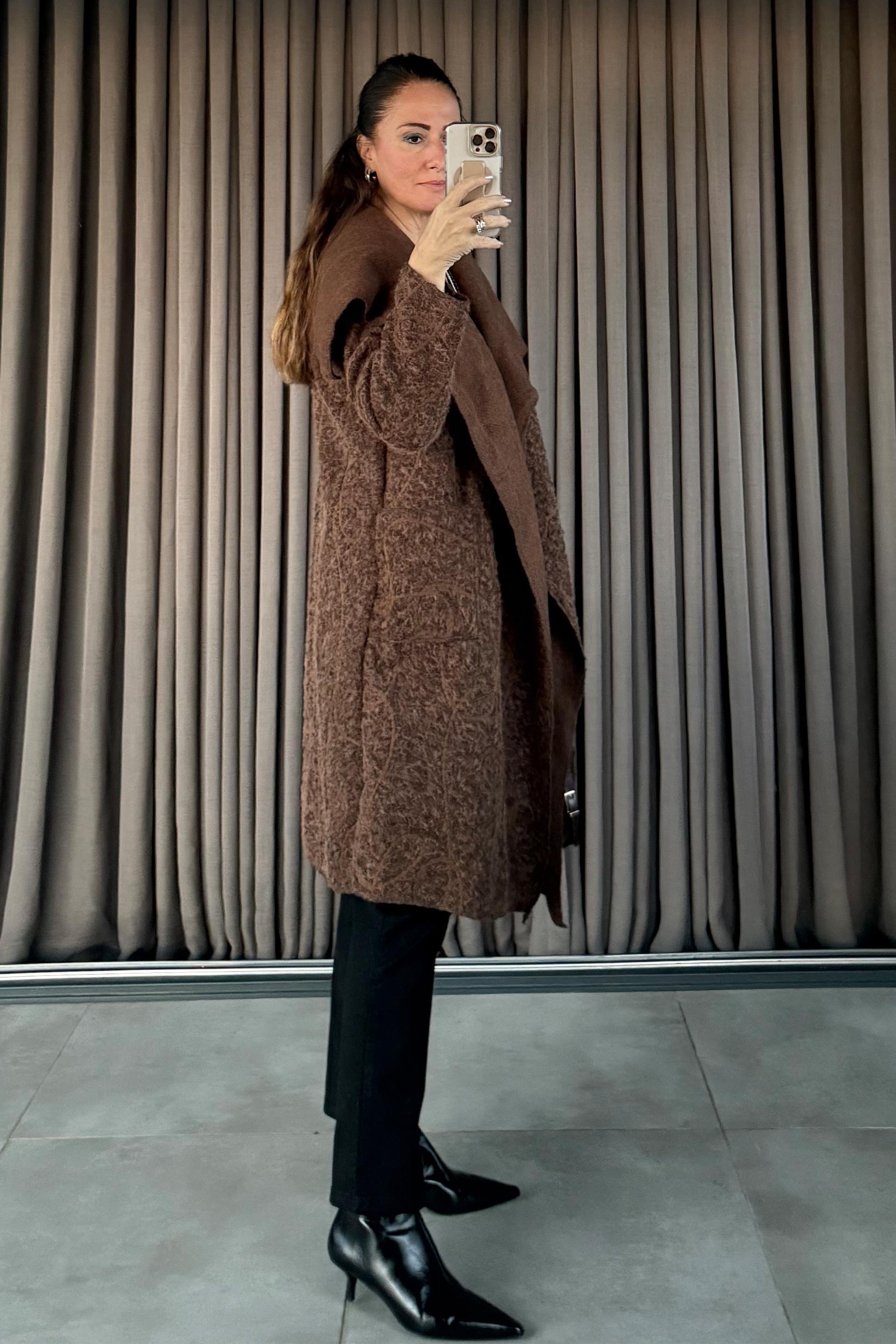 Keçe kumaştır. Standart bedendir. 38-50 beden arası uyumludur. Göğüs: 134 cm Boy: 95 cm Kol Boy: 57 cm Kol Genişlik: 34 cm
