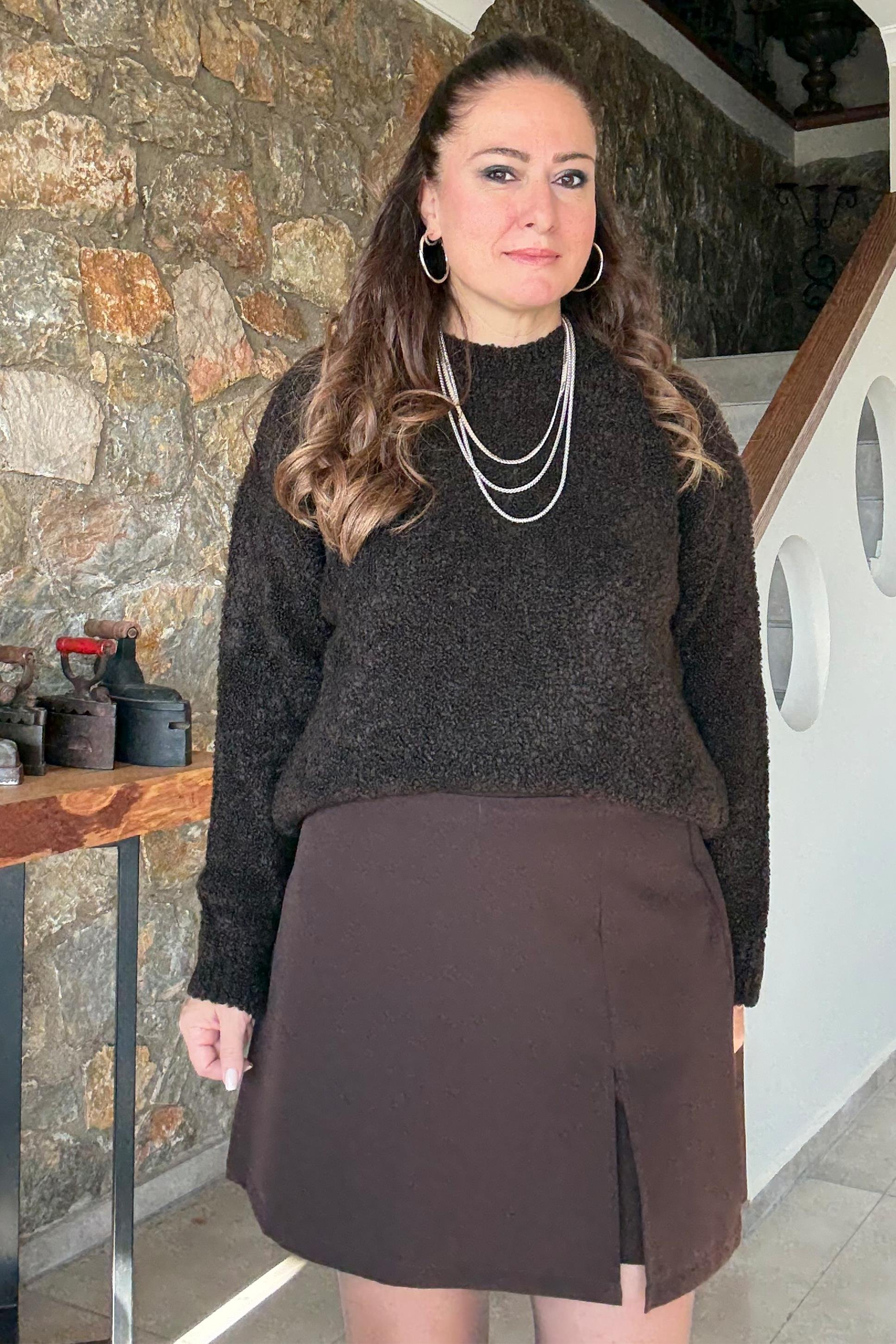 Bonita Yırtmaç Detaylı Şort Etek Kahve