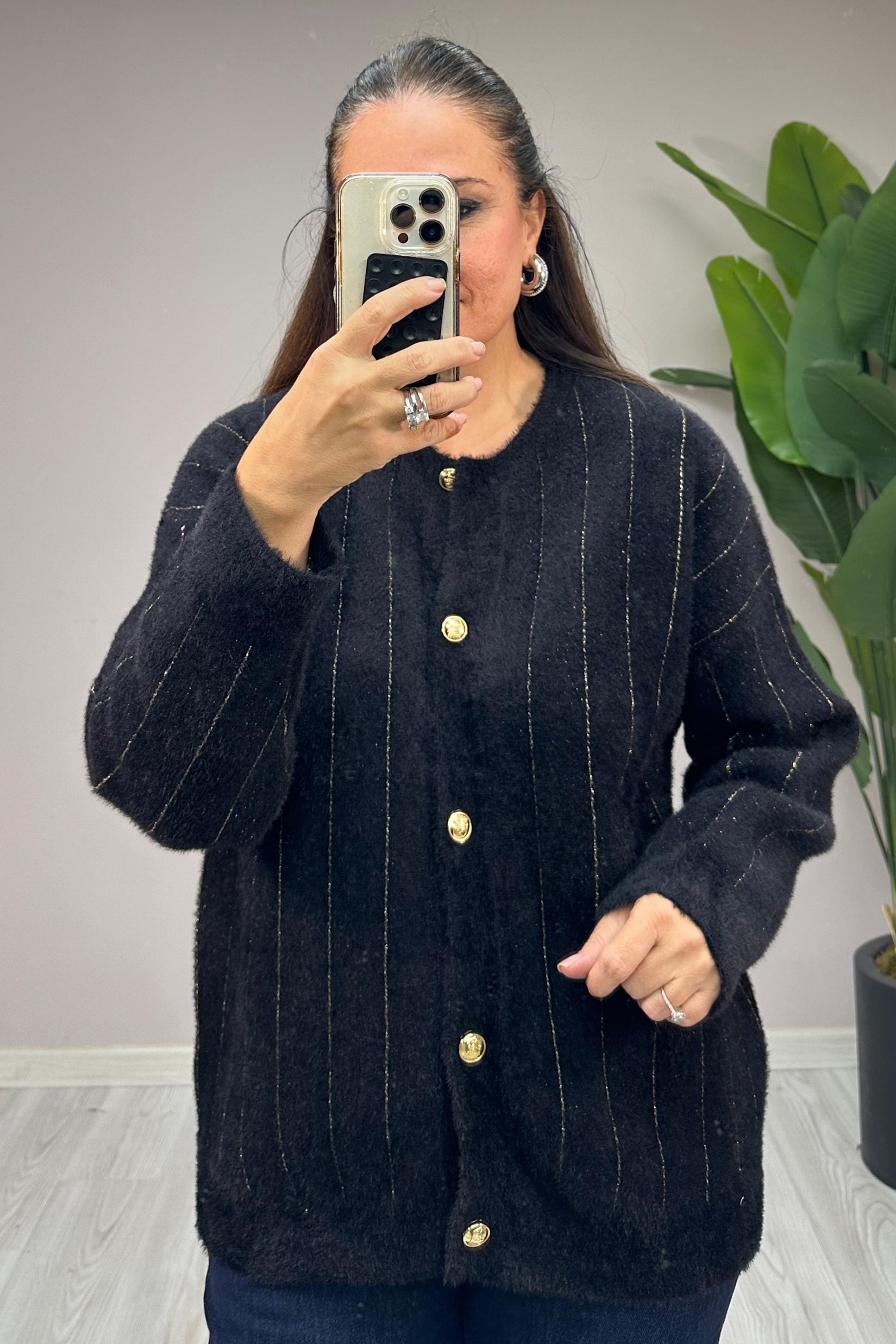 Standart bedendir. 36-48 beden arası uyumludur. Önden gold düğmelidir. Angora kumaştır.