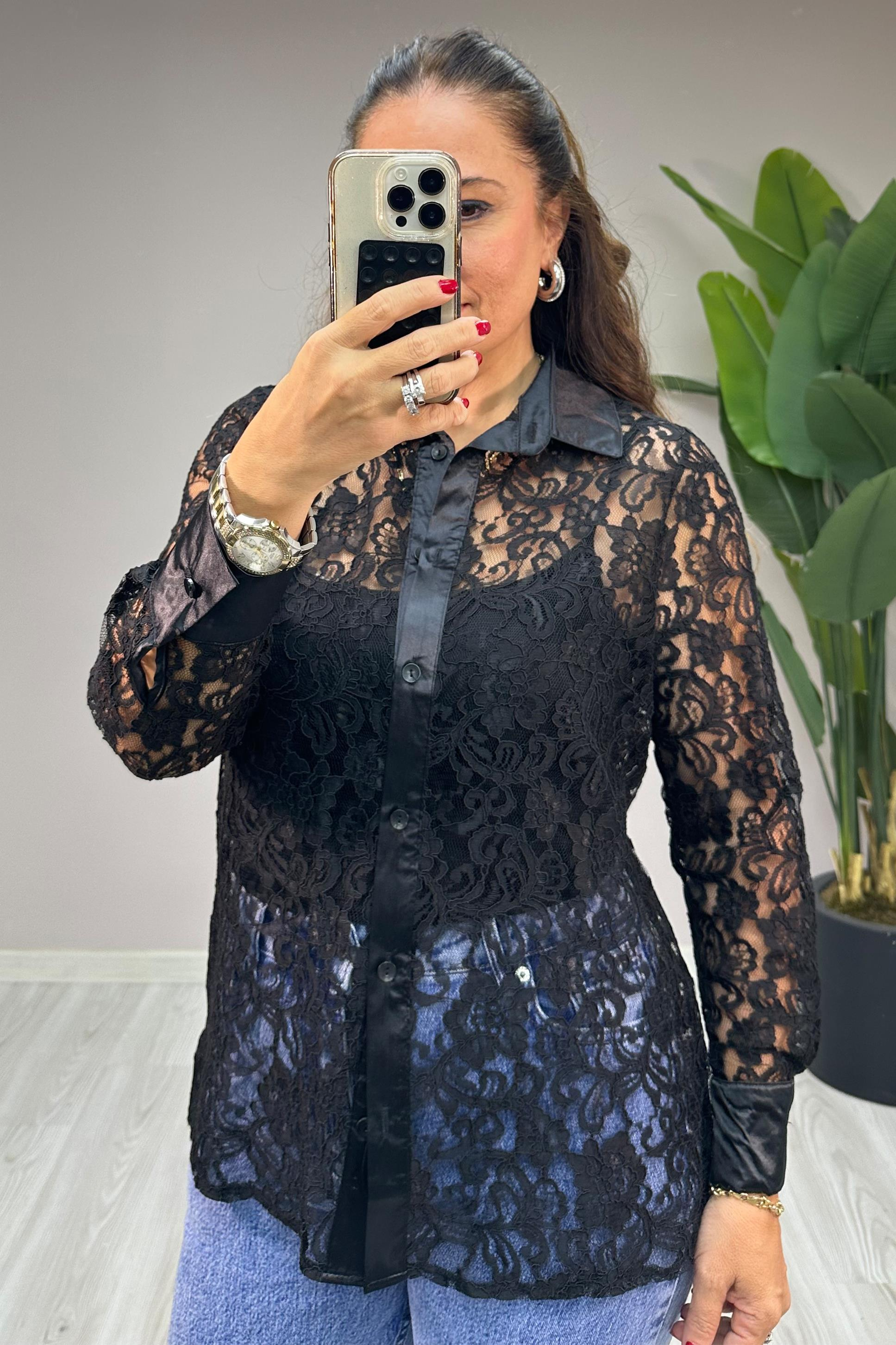 Likralıdır.Yaka ve Kol Kısmı saten . kendisi dantel kumaştır.
