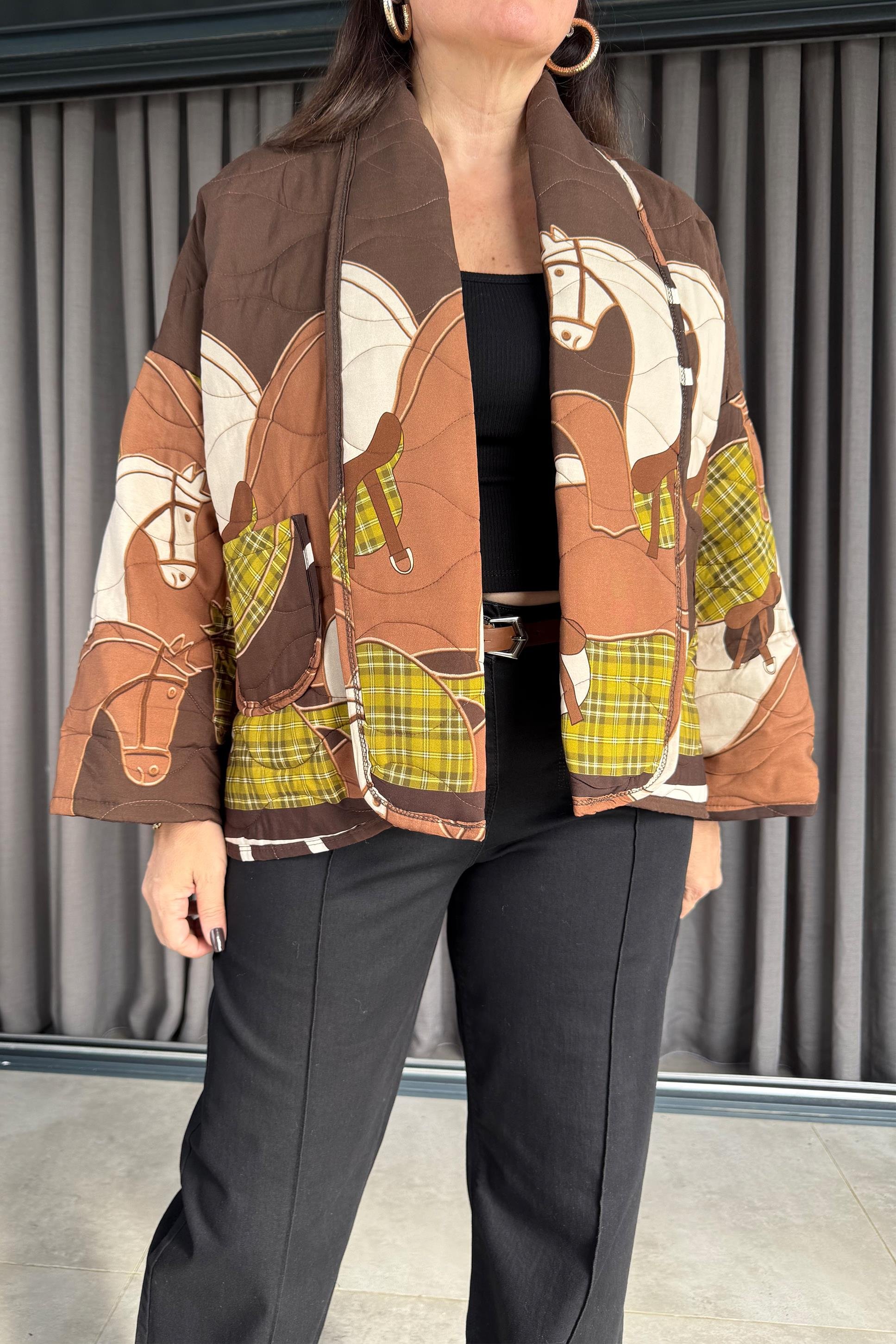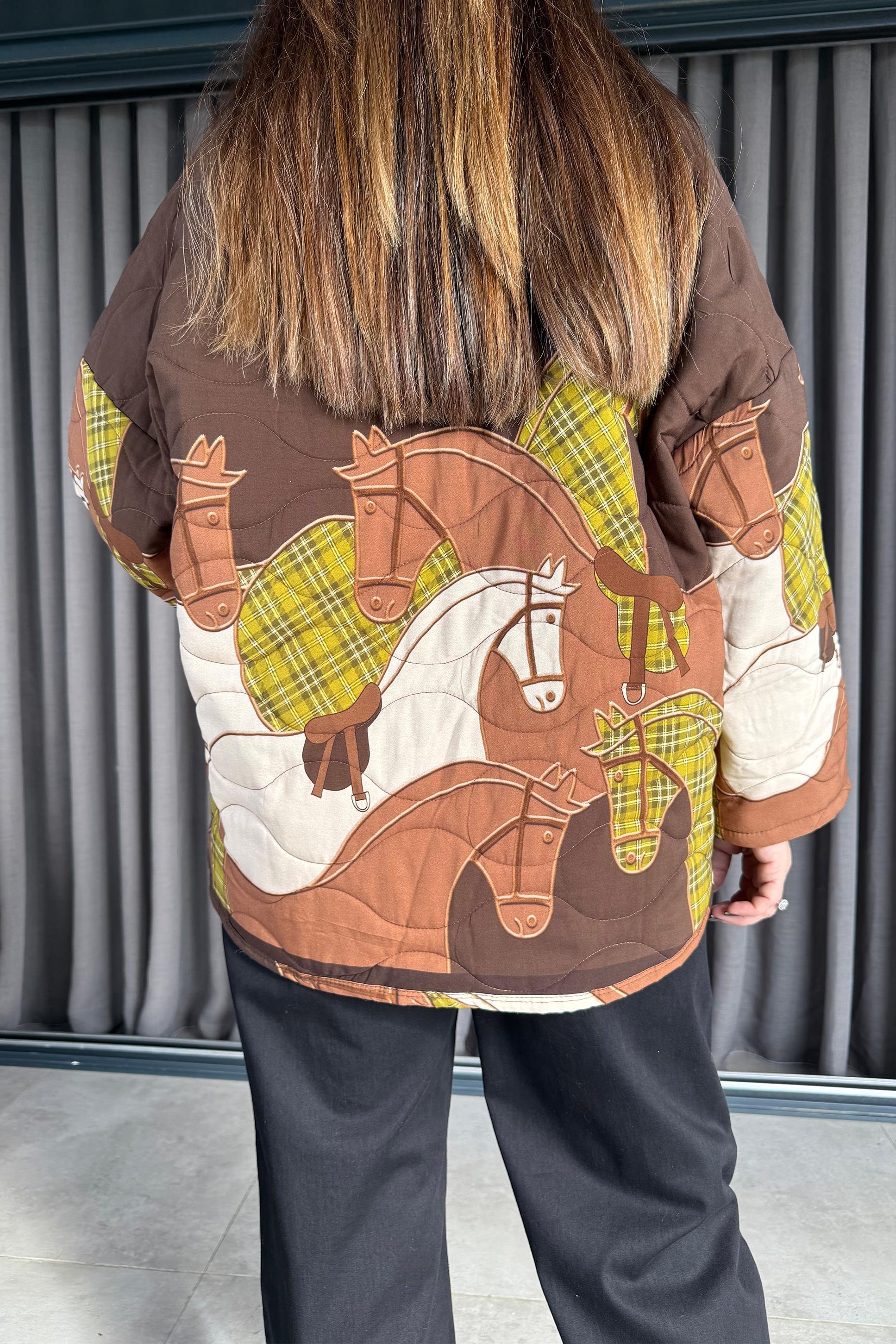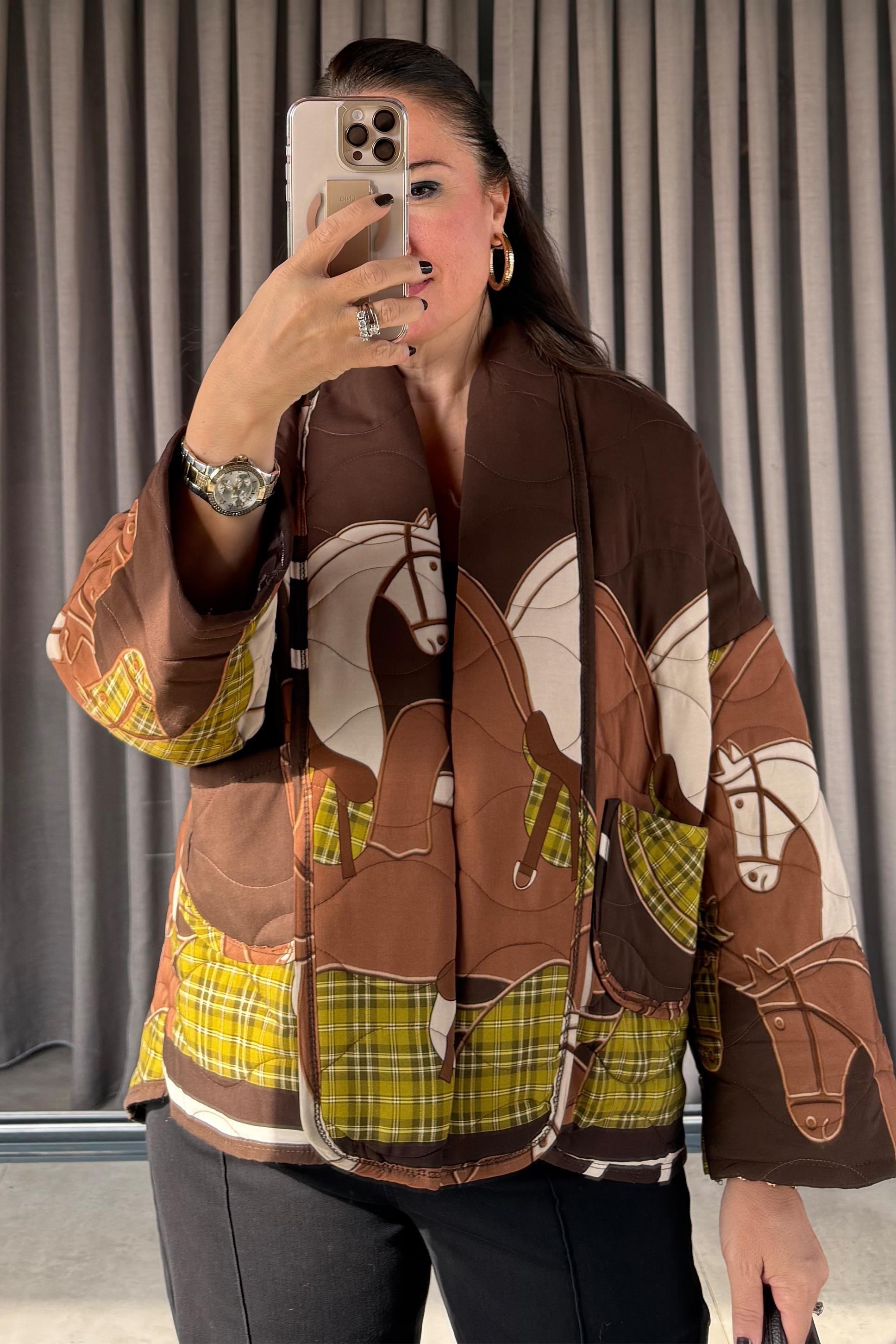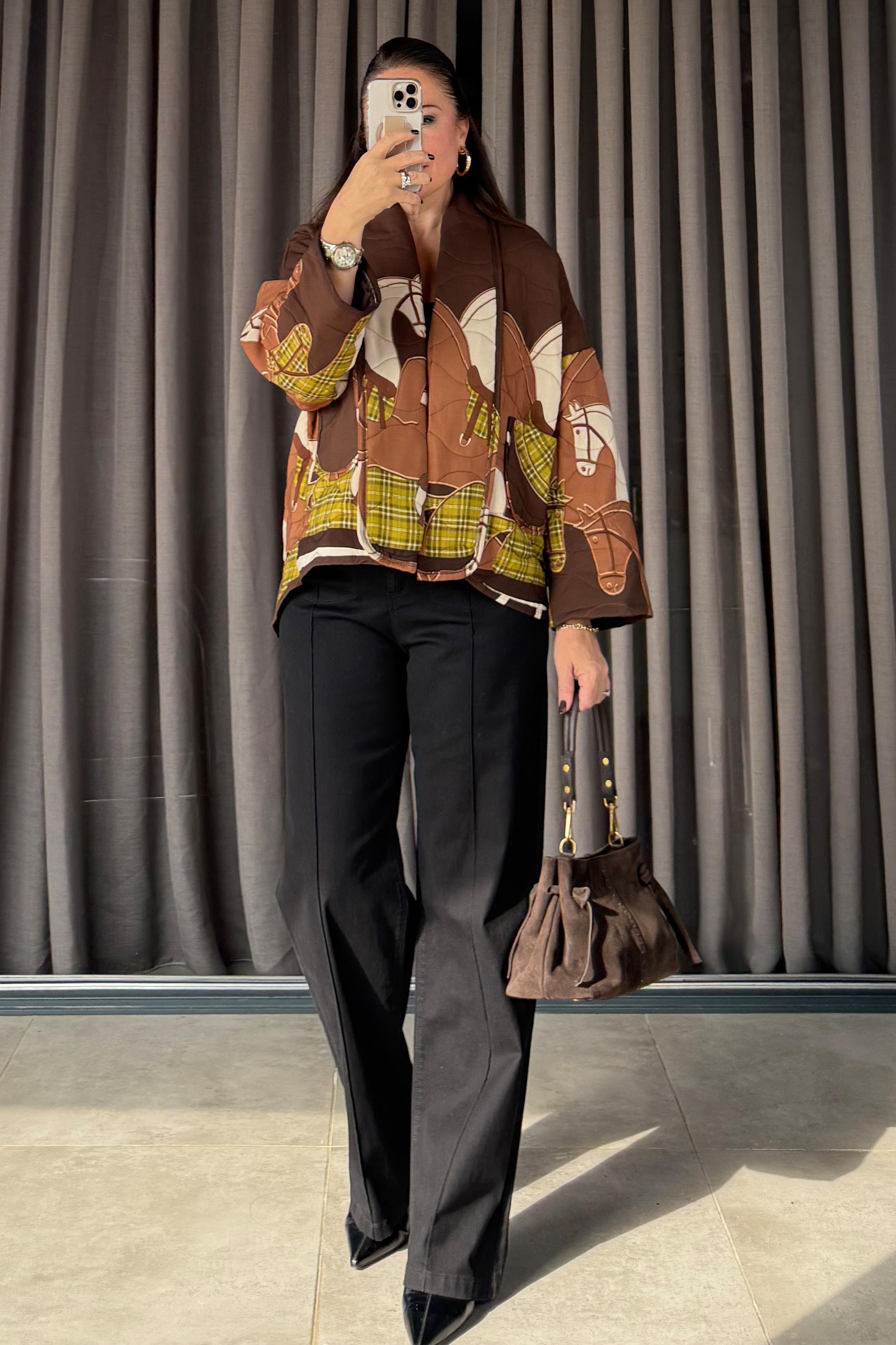 Koton kumaştır. Standart bedendir. 36-46 beden arası uyumludur. Göğüs: 122 cm Ön Boy: 60 cm Arka Boy: 72 cm Kol Boyu: 59 cm Kol Genişlik: 52 cm