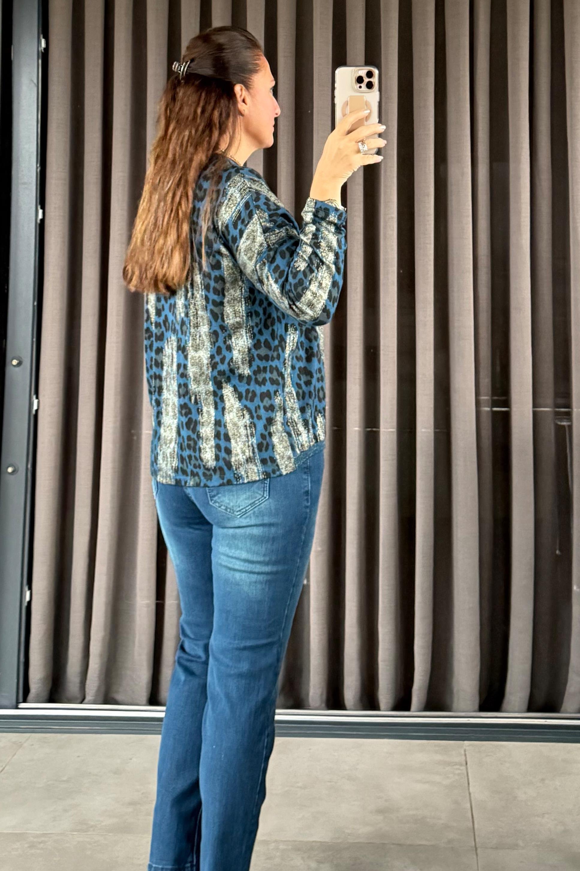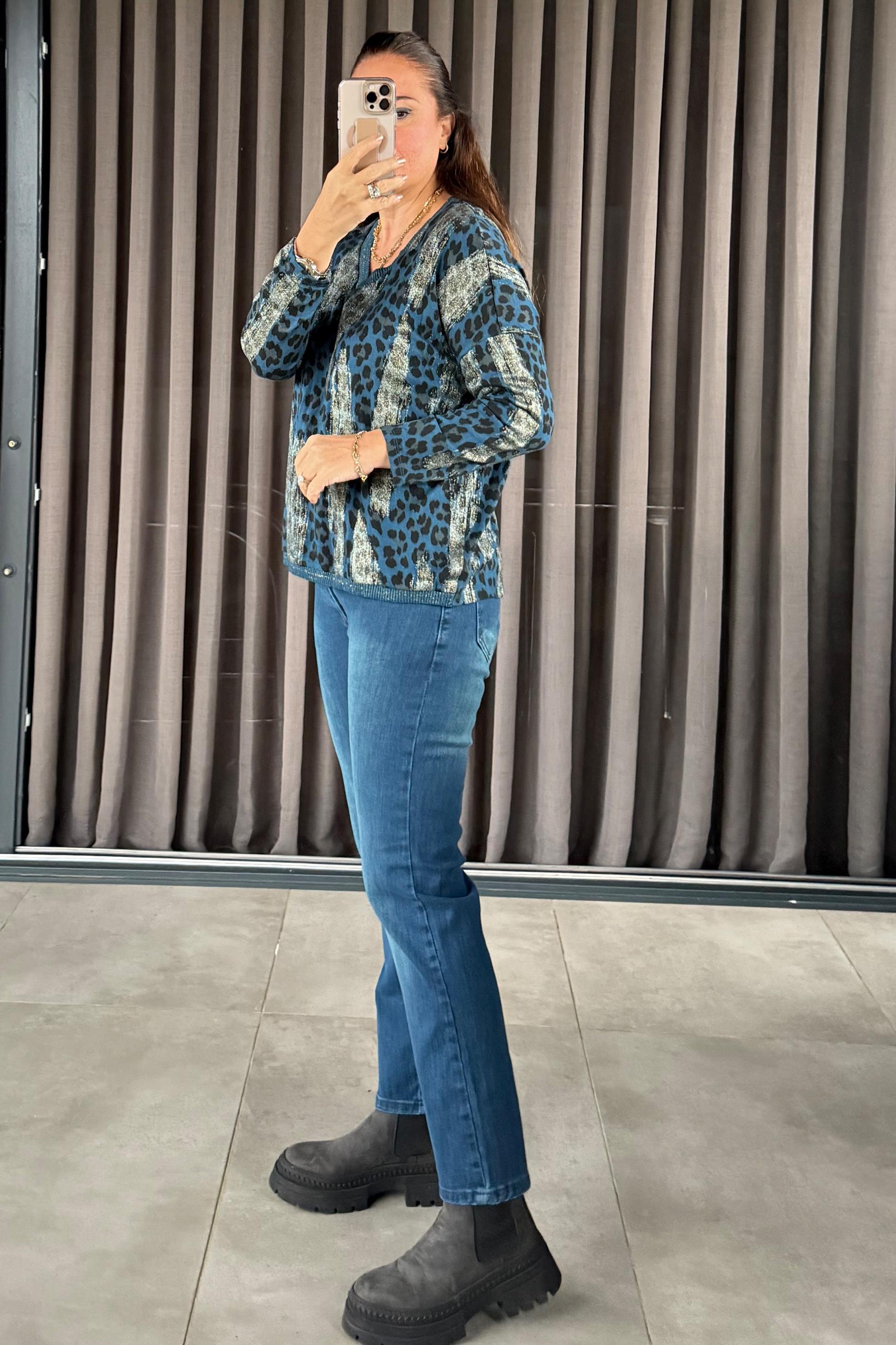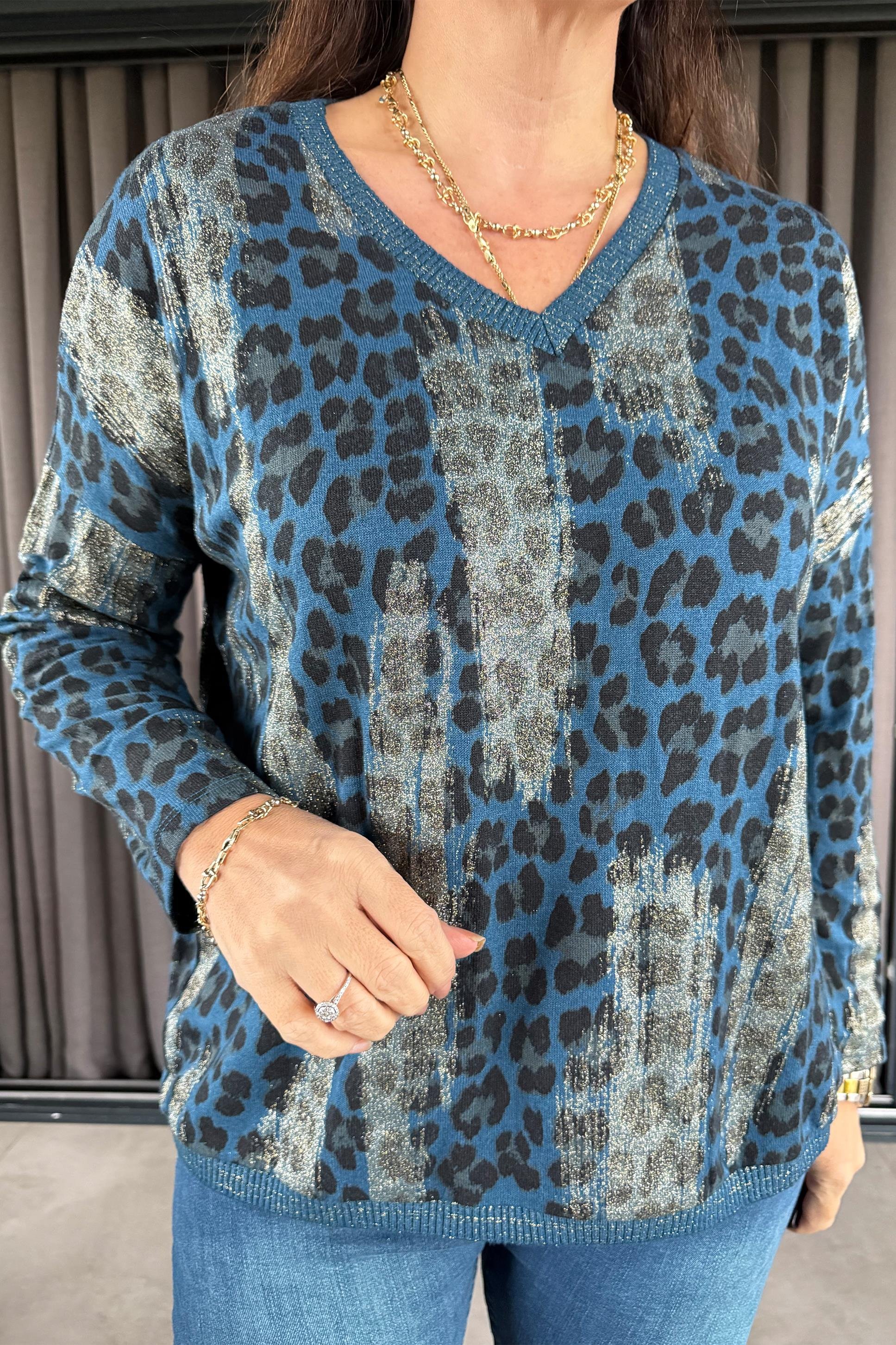 Fiera Leopar Desenli Triko Petrol Mavisi