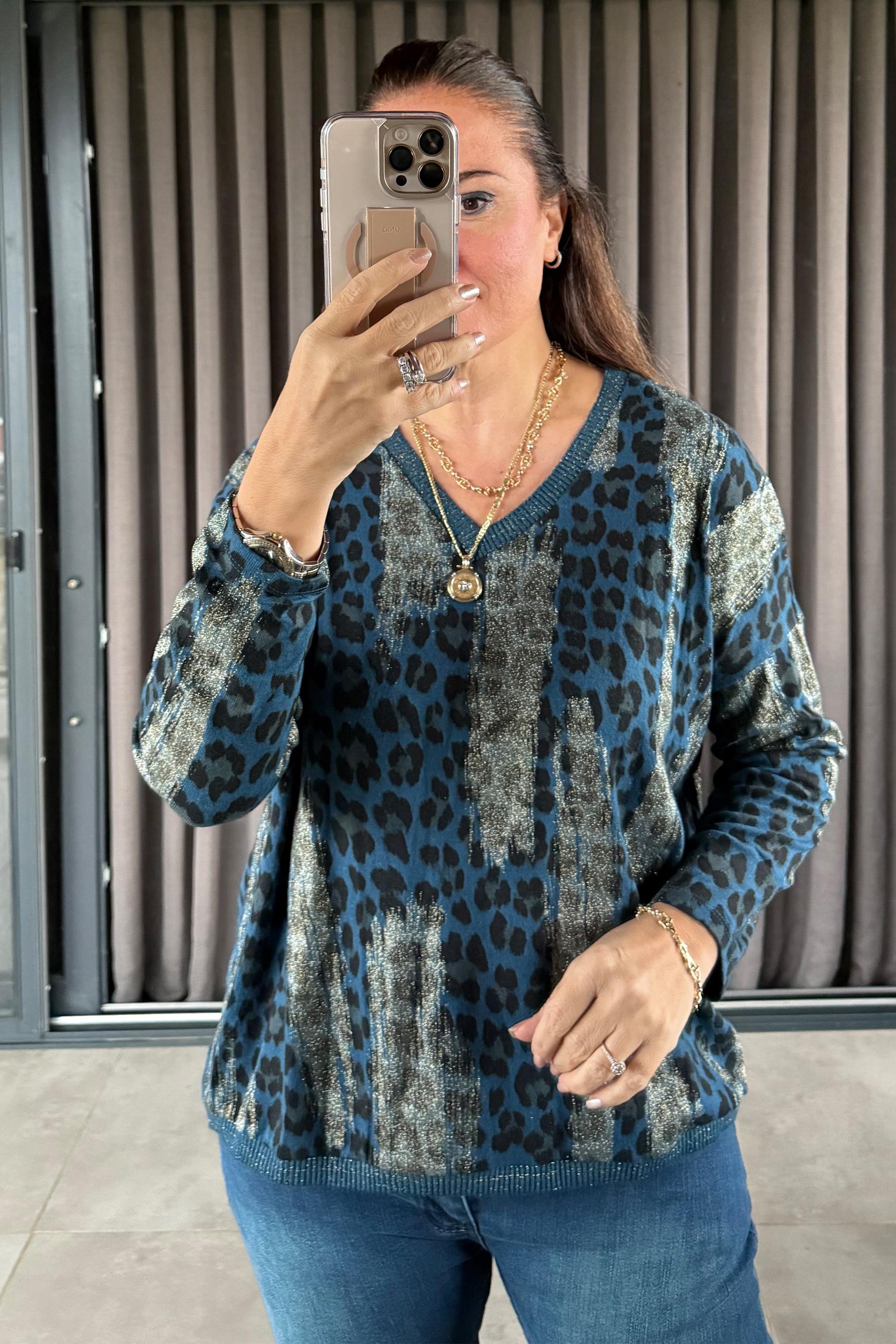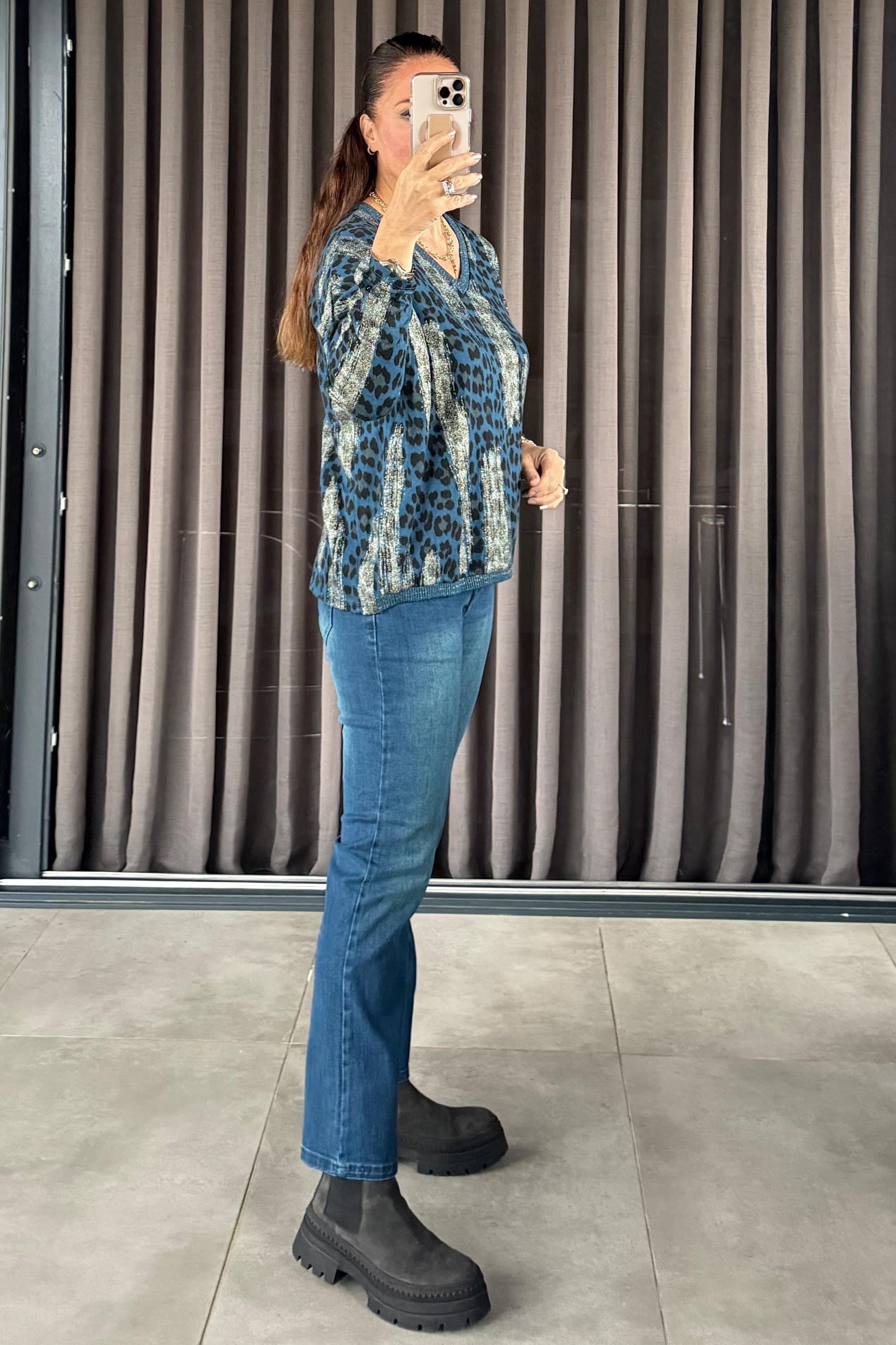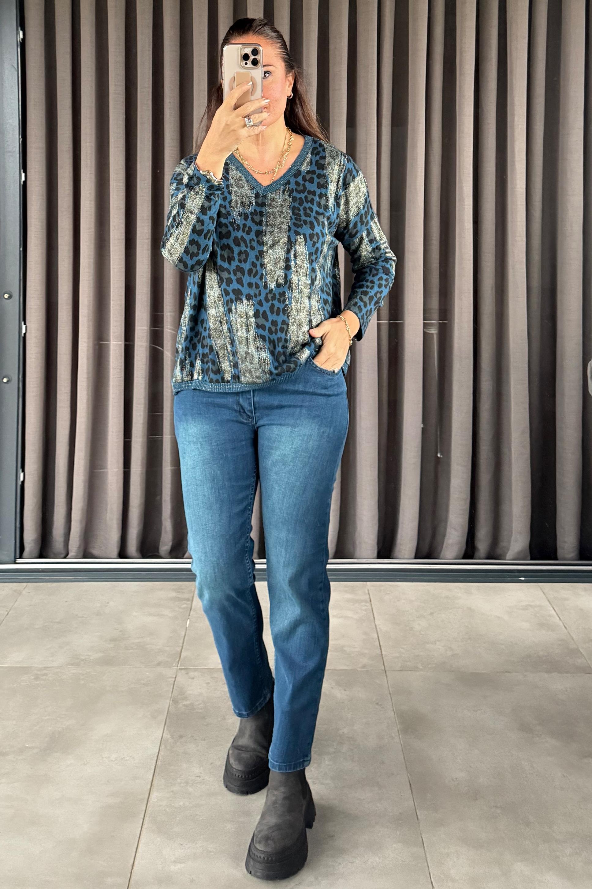 Fiera Leopar Desenli Triko Petrol Mavisi