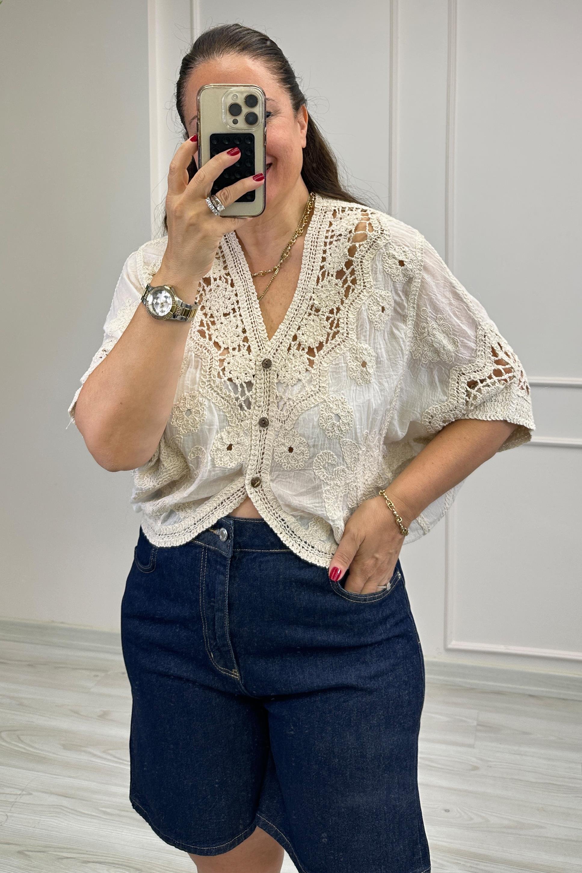 Standart bedendir. Dantel kumaştır. 36-48 bedenler arası uyumludur. Kol Boy: 40 cm Kol Genişlik: 40 cm Boy: 68 cm Göğüs: 100 cm