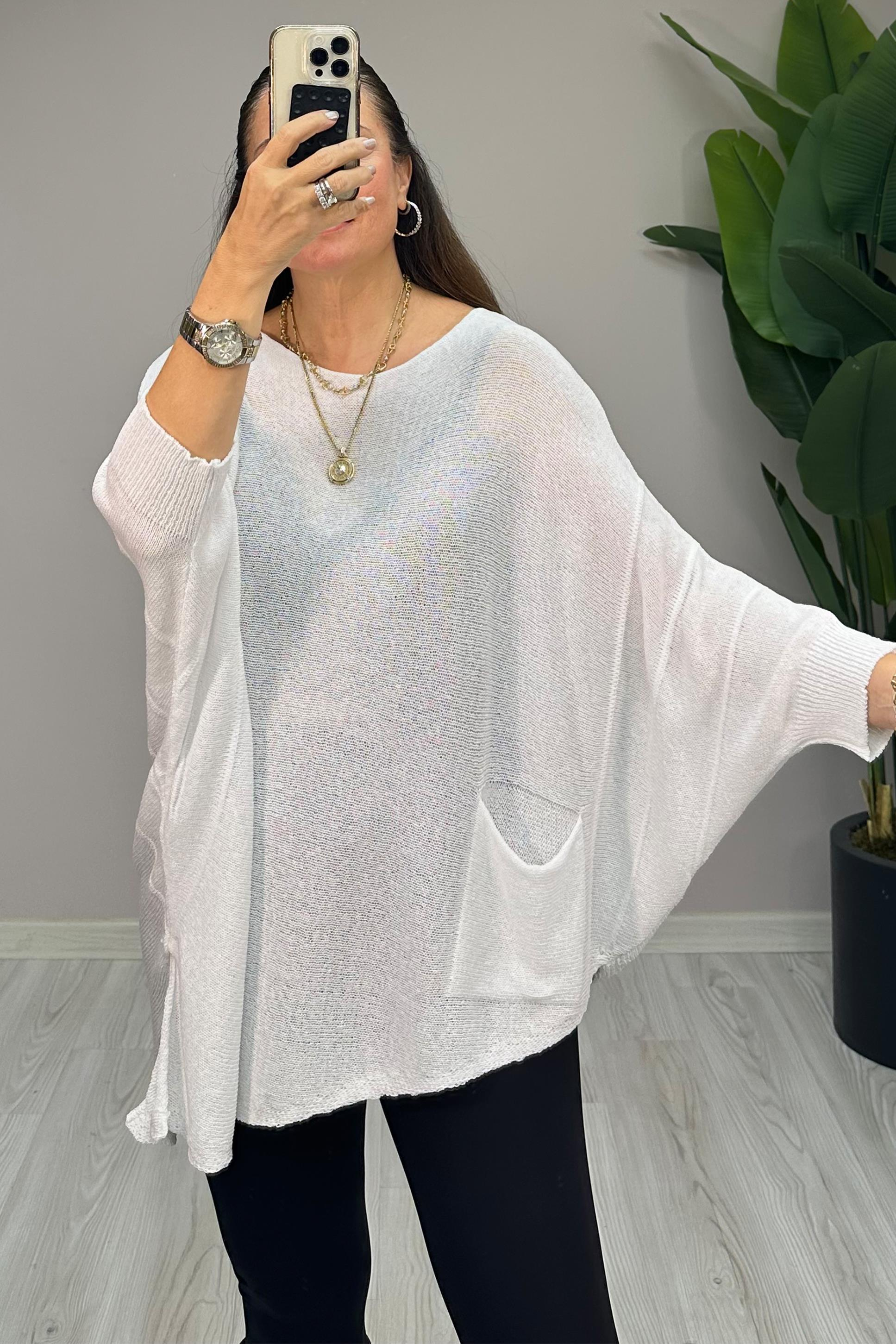 Helen Asimetrik Triko Bluz Beyaz