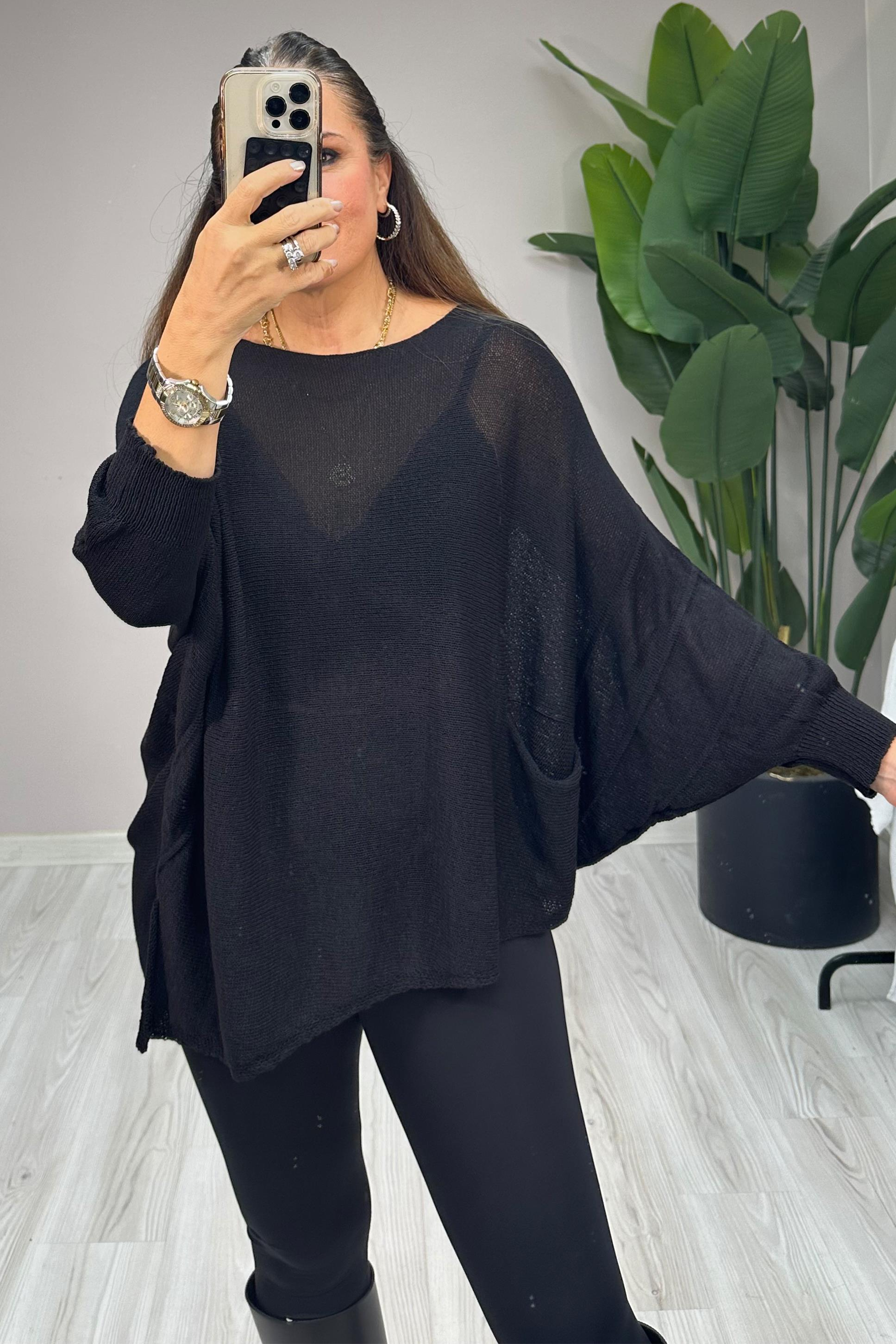 Helen Asimetrik Triko Bluz Siyah (MSS00000000000006387)