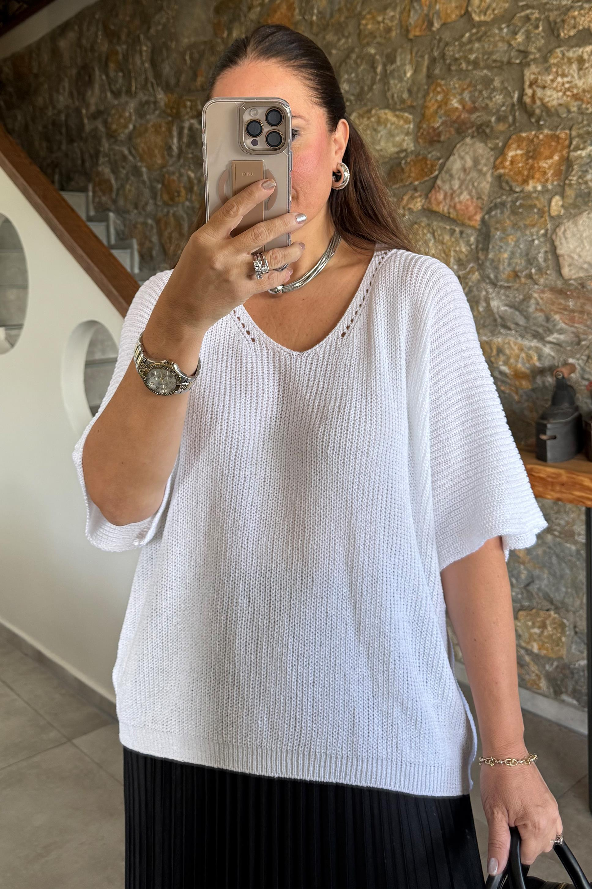 Jalen V Yaka Kısa Kol Triko Beyaz