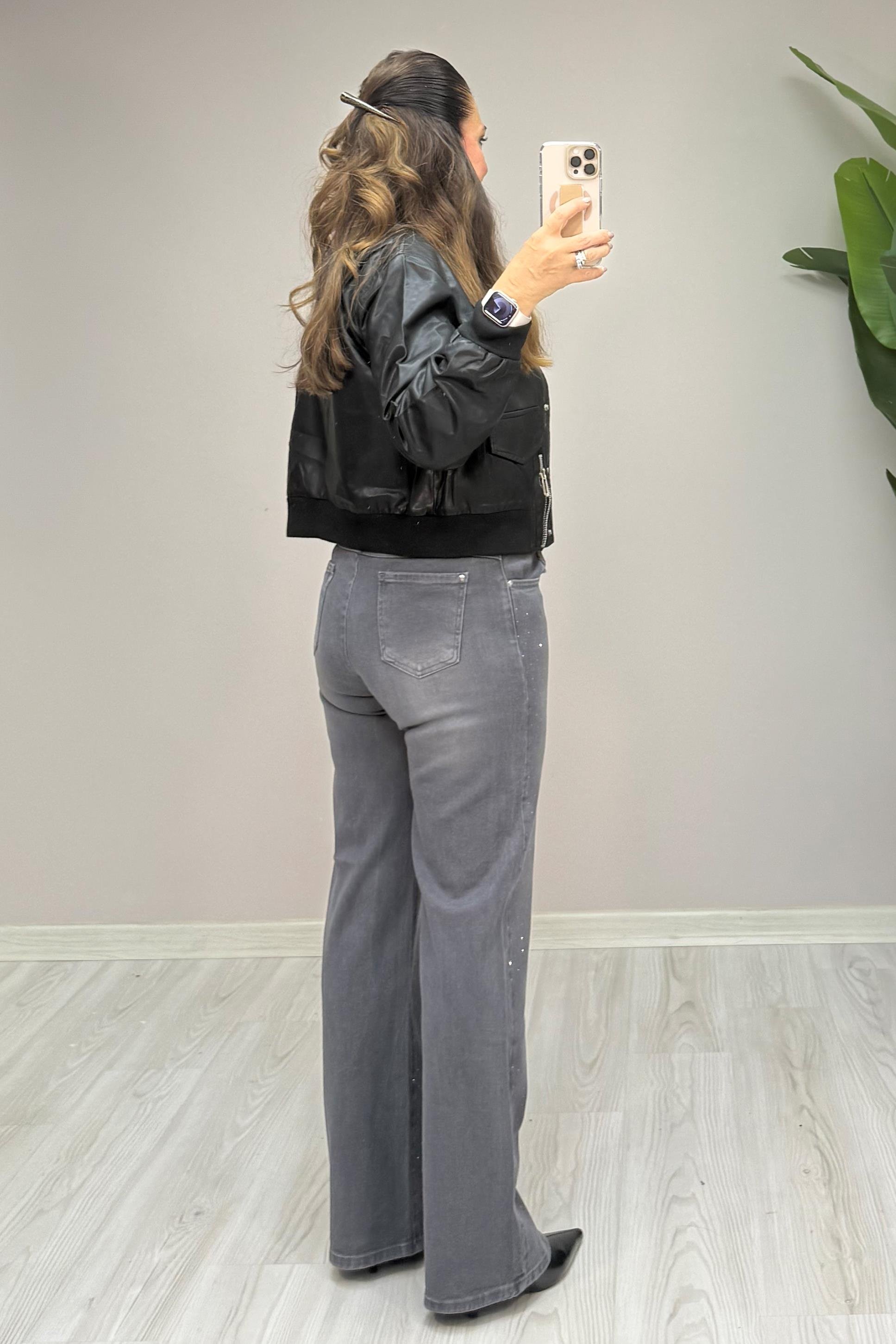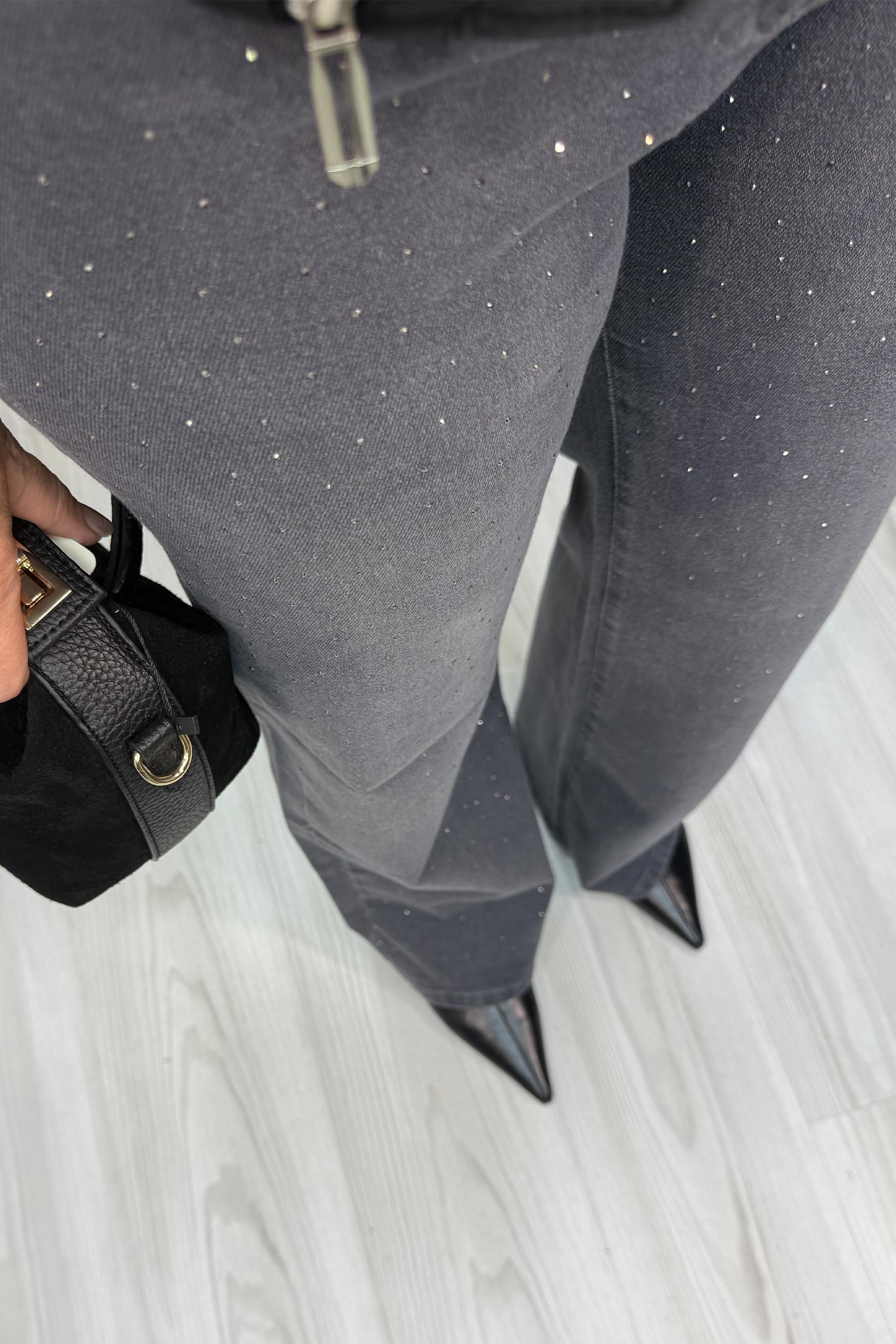 Jane Taşlı Palazzo Pantolon Gri