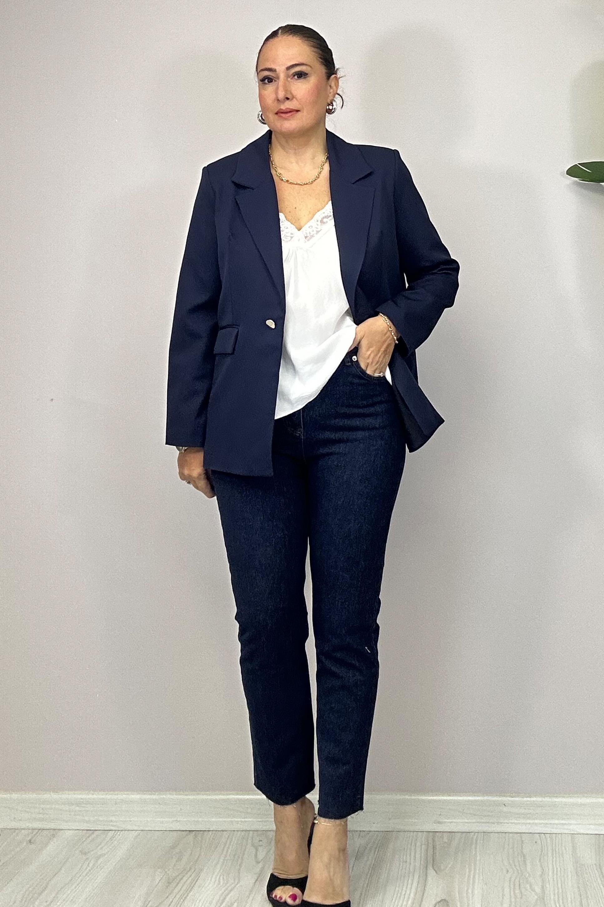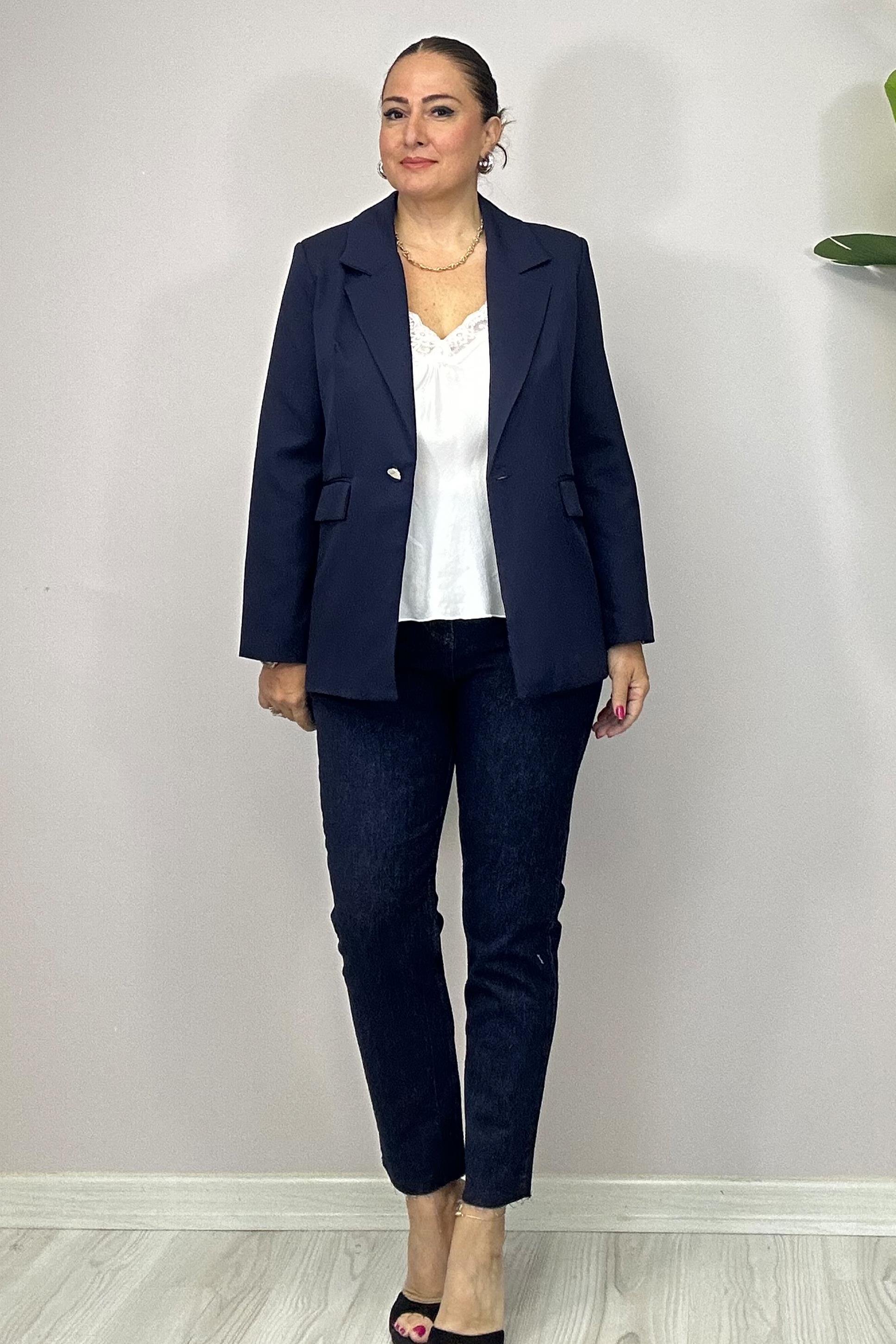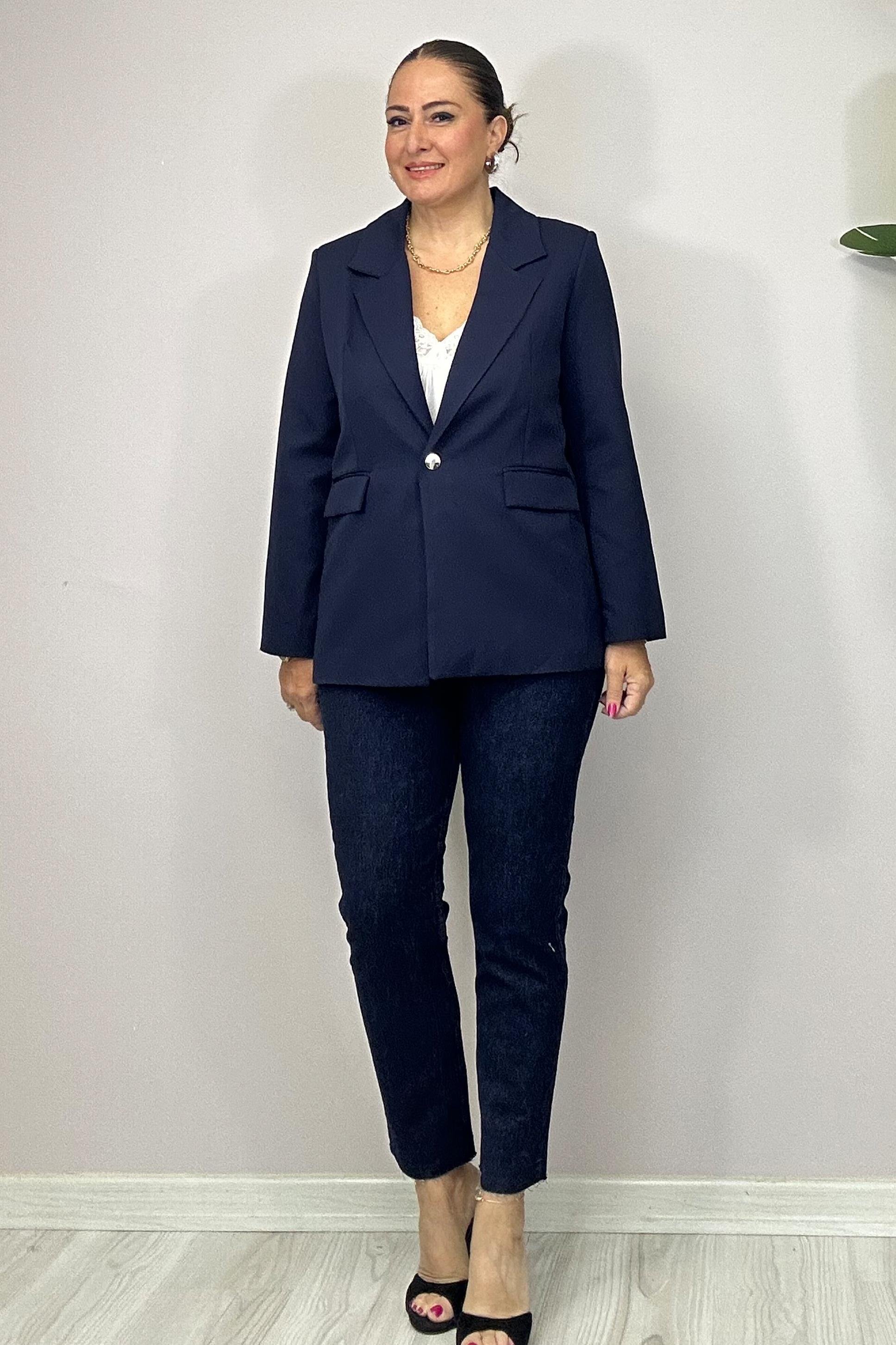 Likralı krep kumaştır. Kendinden astarlıdır. Tek düğmelidir. Gizli cep detaylıdır.