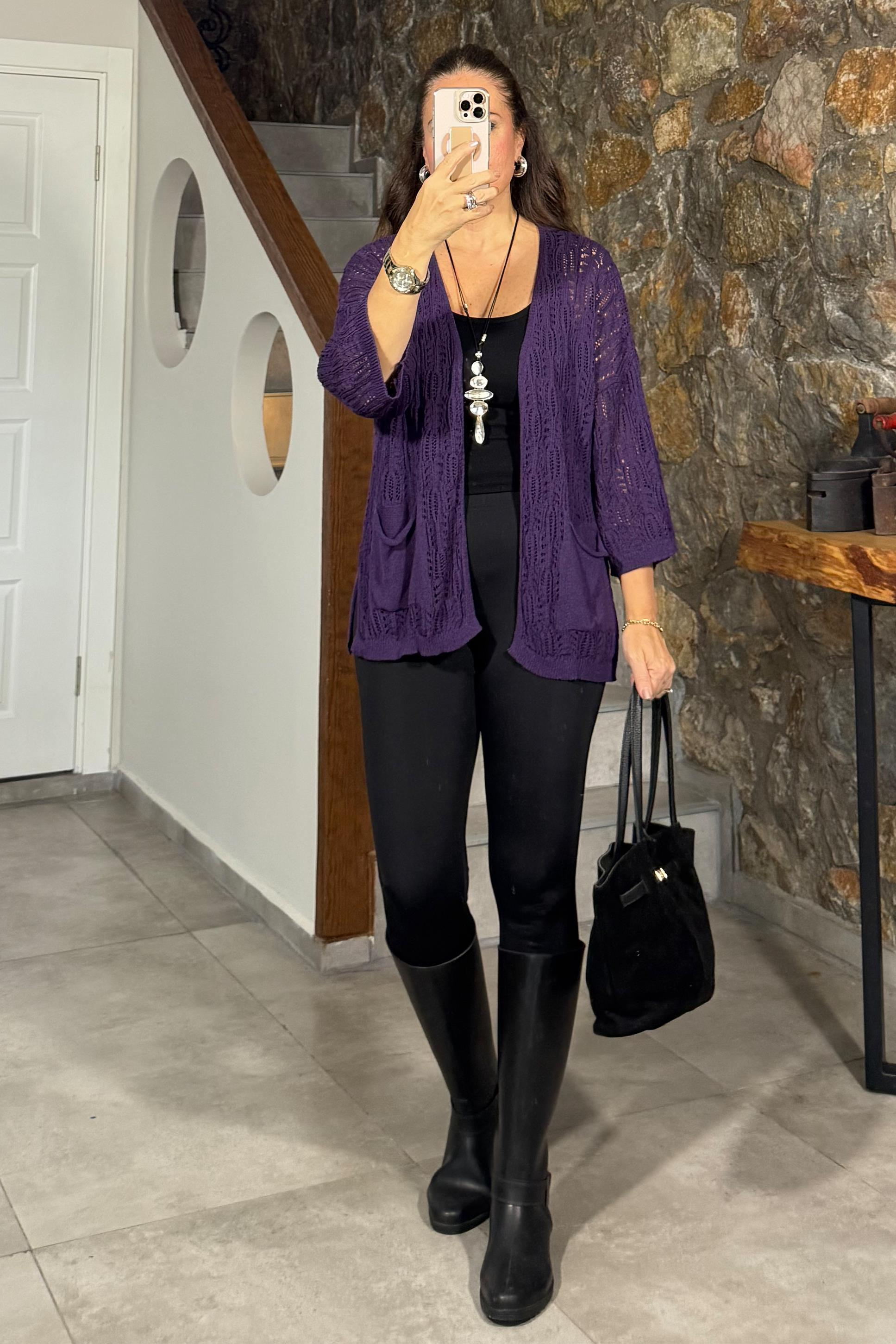 Kayle Ajurlu Triko Ceket Mor