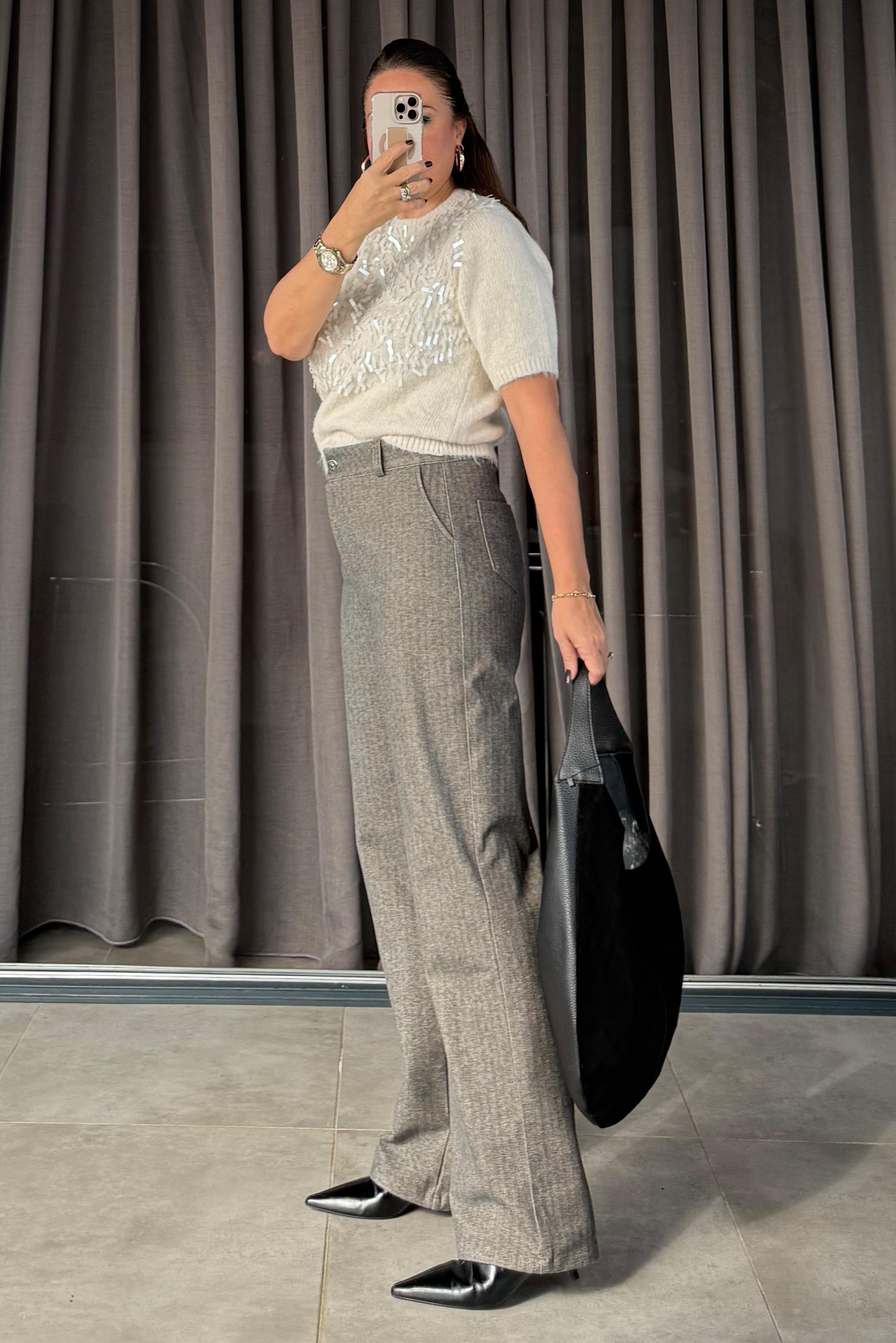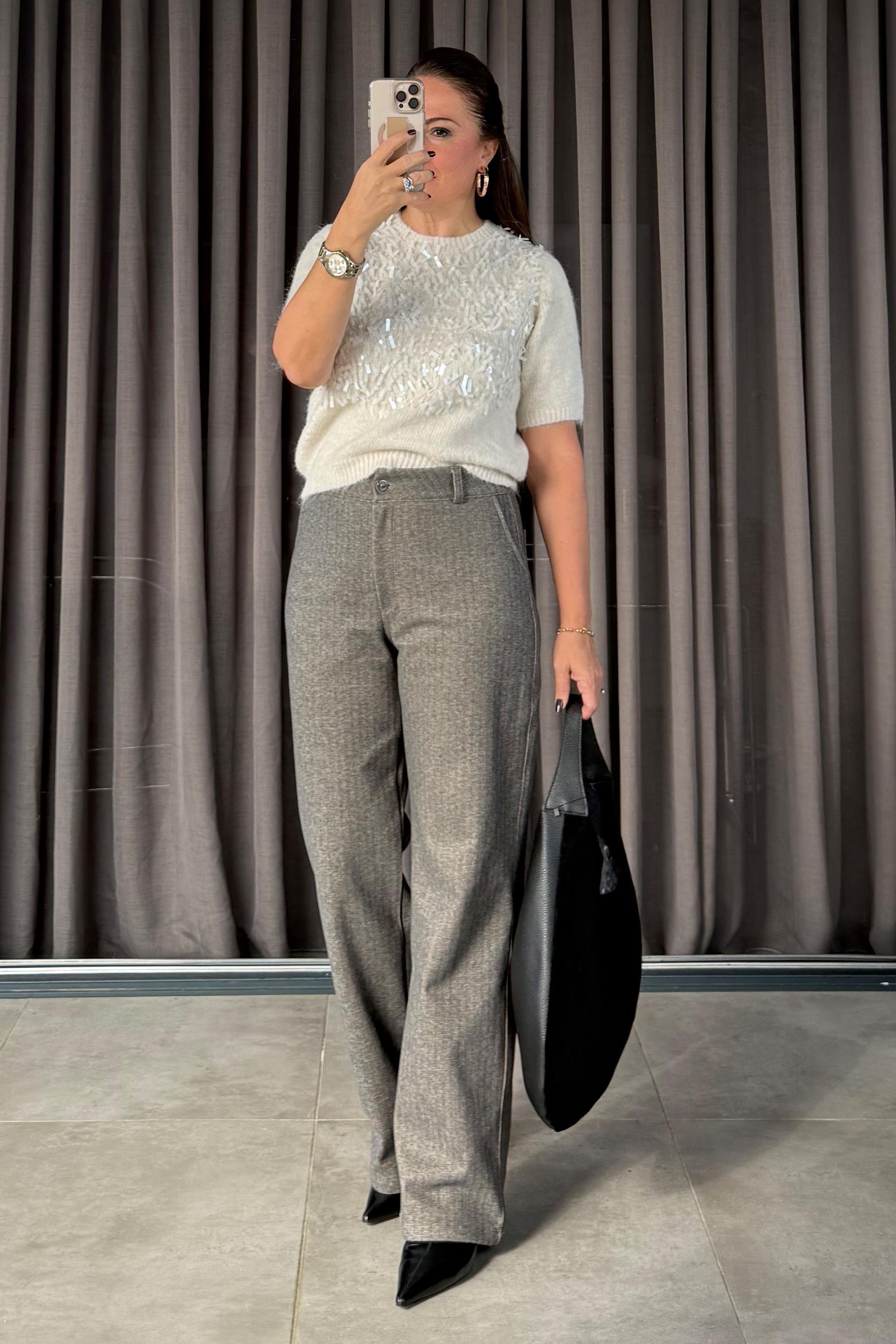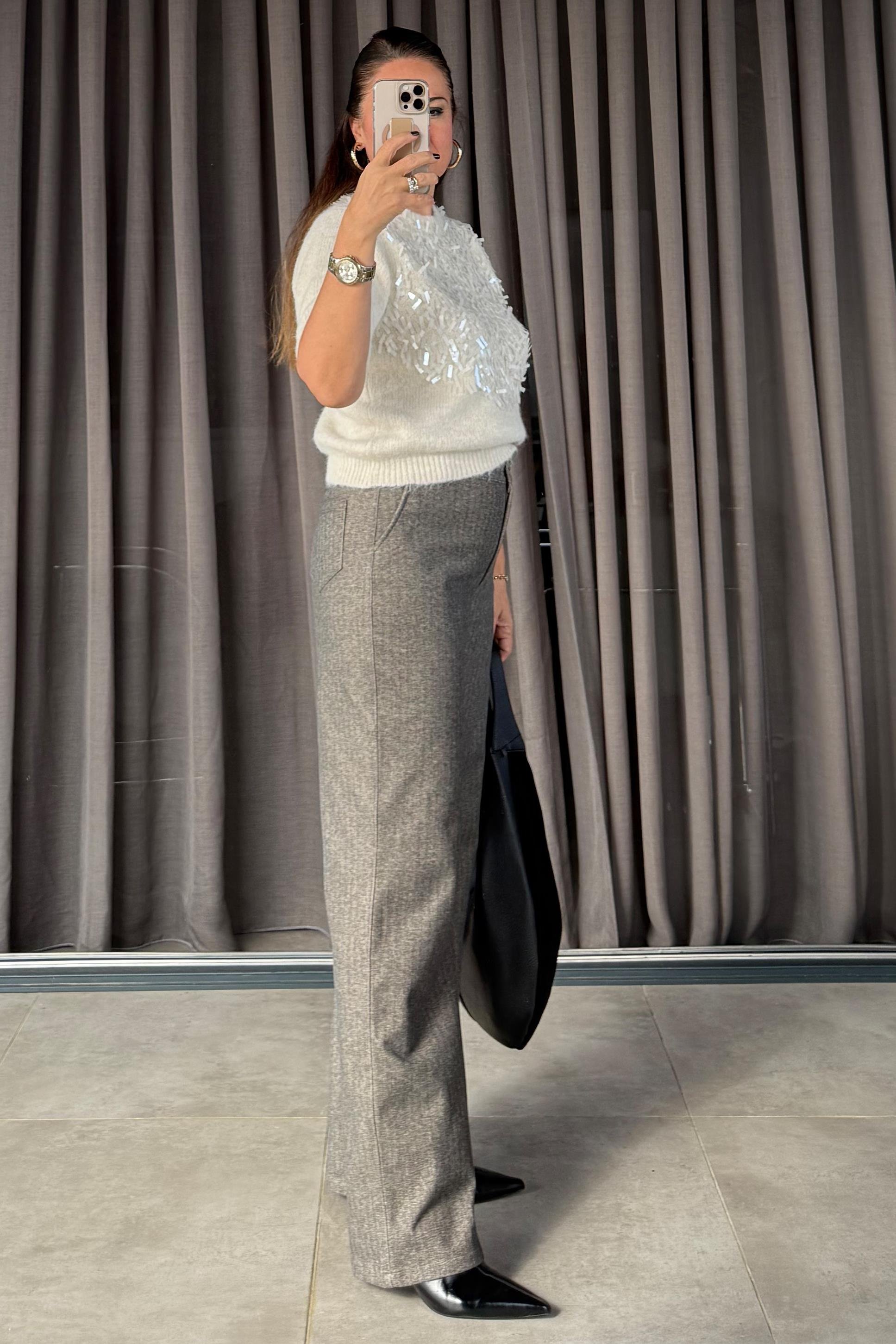 %96 koton, %4 elestane kumaştır. 44 beden ölçüsü; Bel: 80 cm Basen: 136 cm Boy: 112 cm