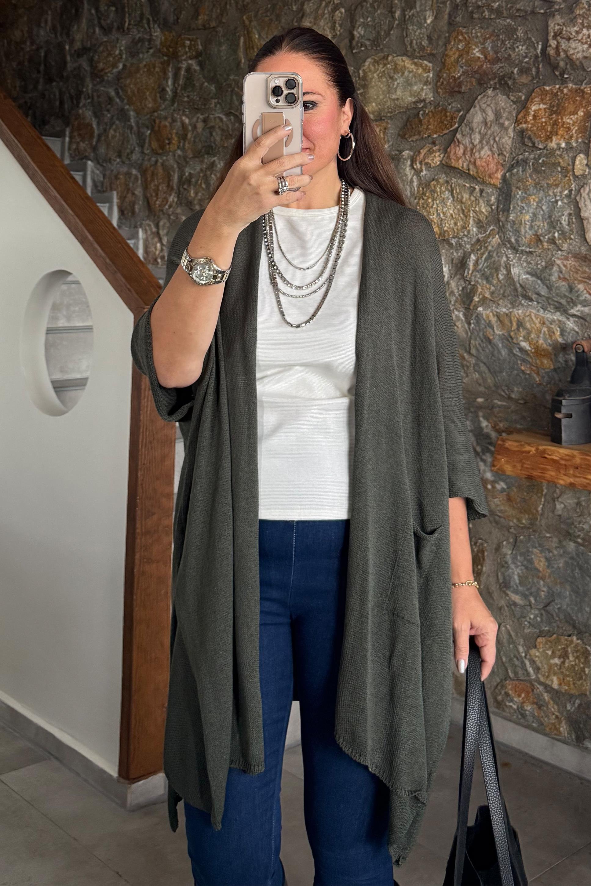 Nalinda Cepli Triko Hırka Haki
