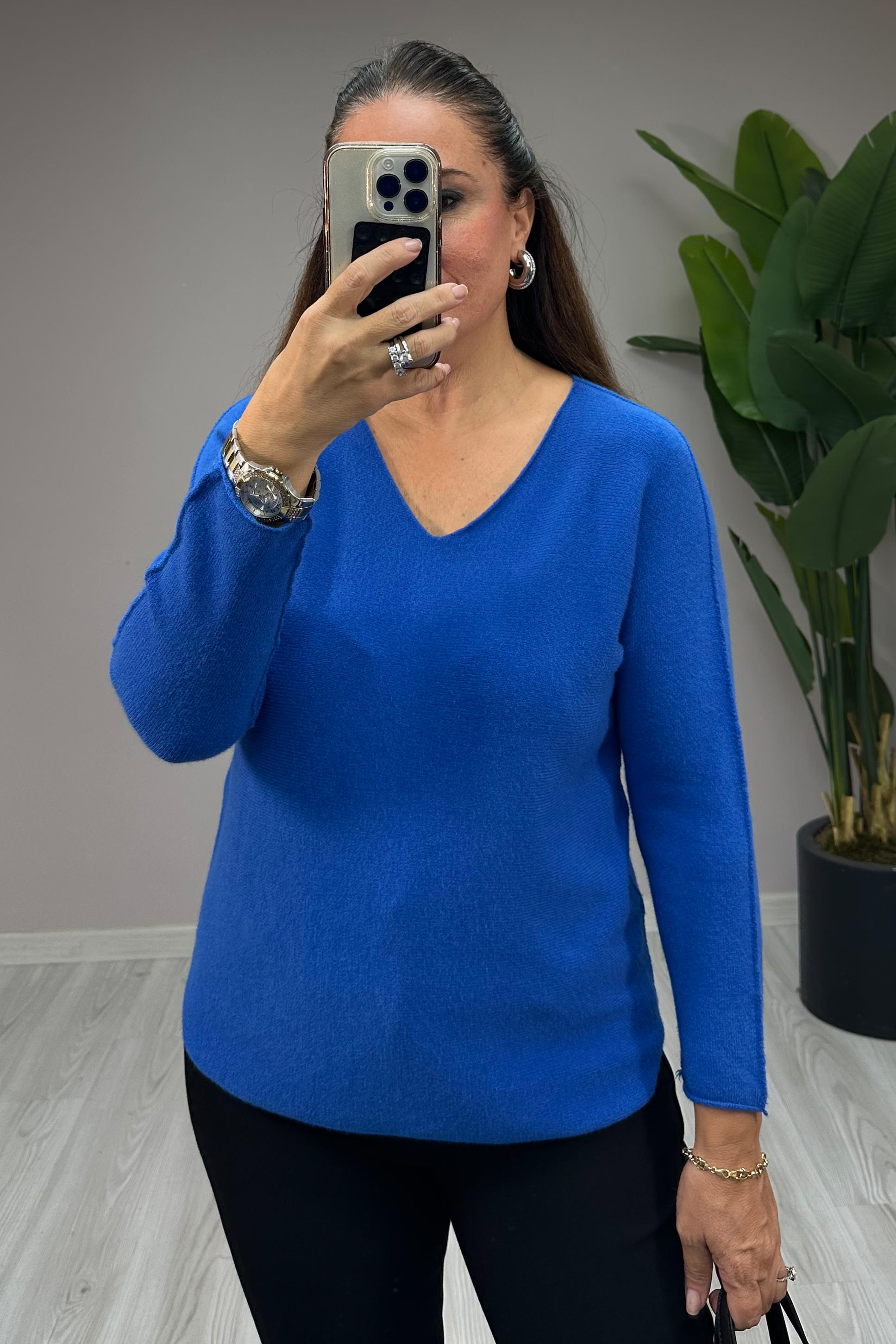 Nicel V Yaka Triko Kazak Saks Mavi (MSS00000000000006354)