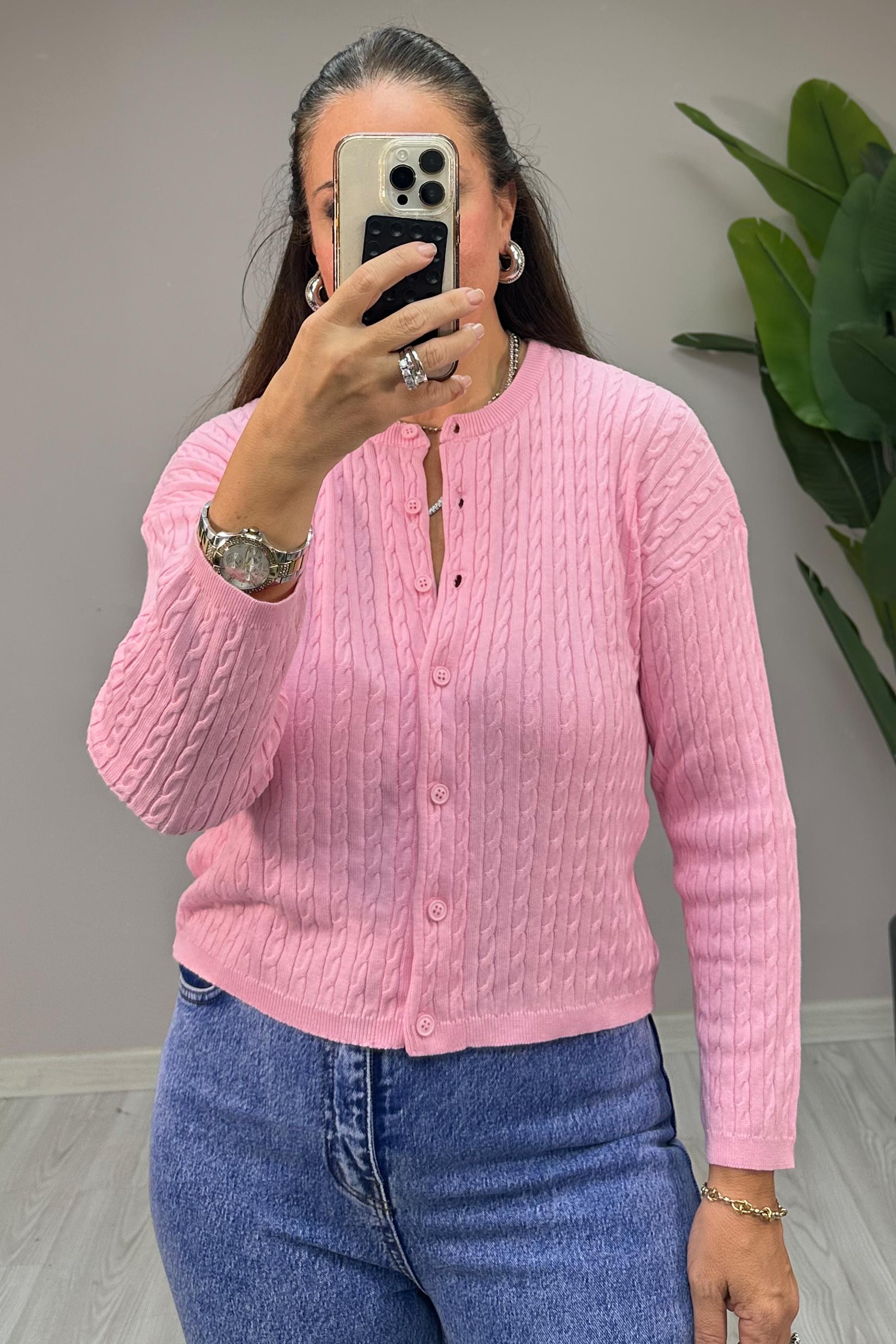 Saç Örgülü Hırka Pembe