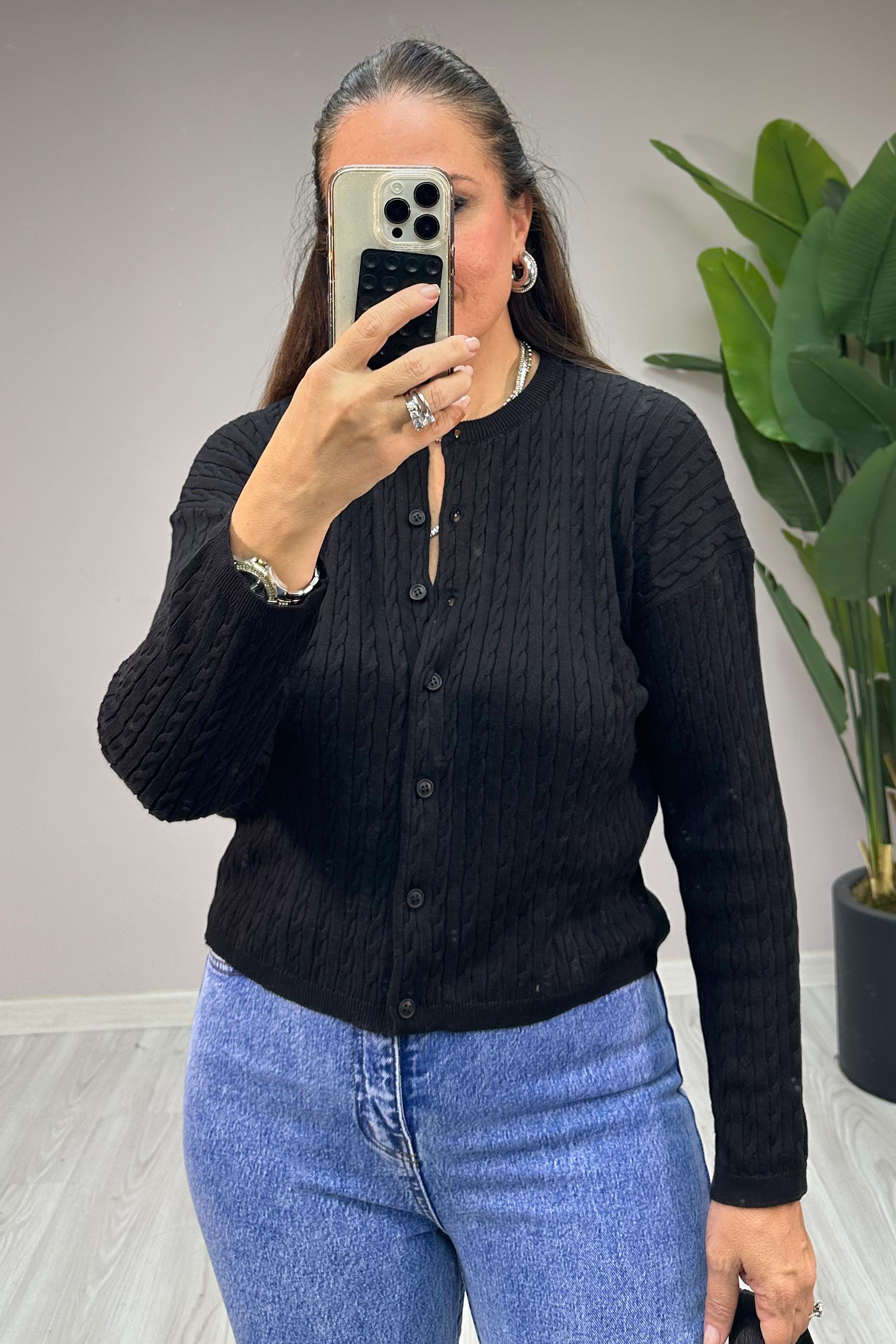Saç Örgülü Hırka Siyah