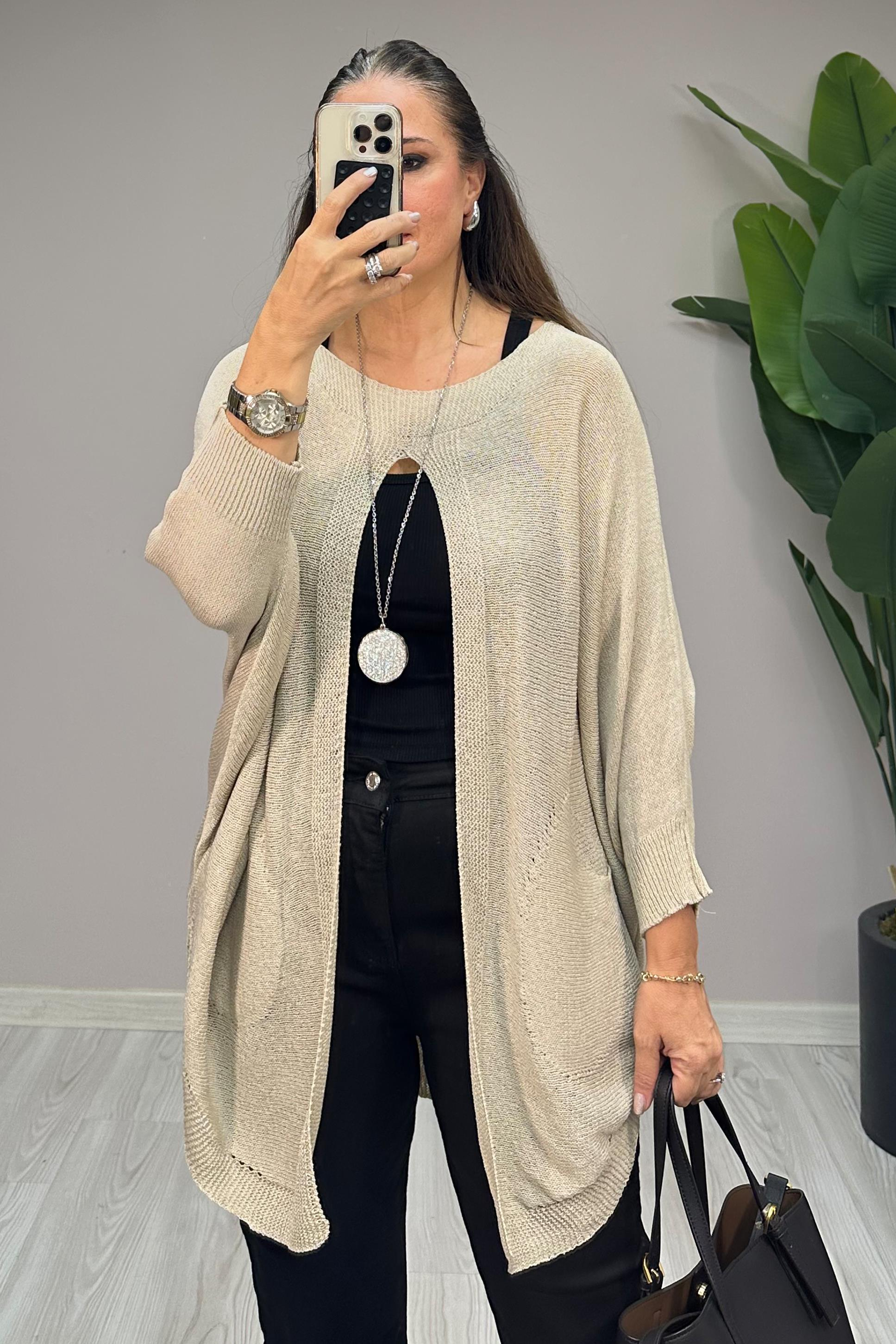Merserize trikodur. Geniş kalıptır. Standart bedendir. 36-56 beden arası uyumludur. Yarasa Koldur.