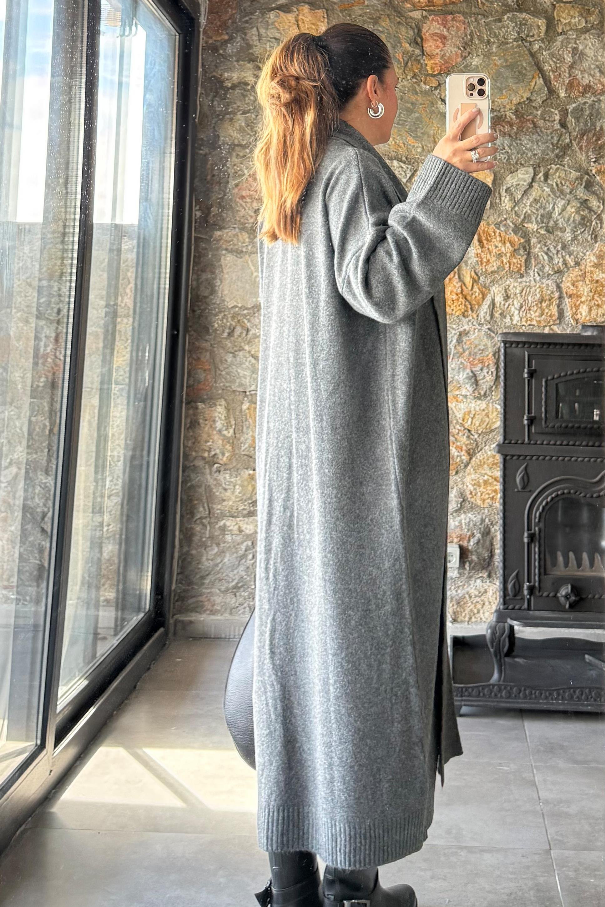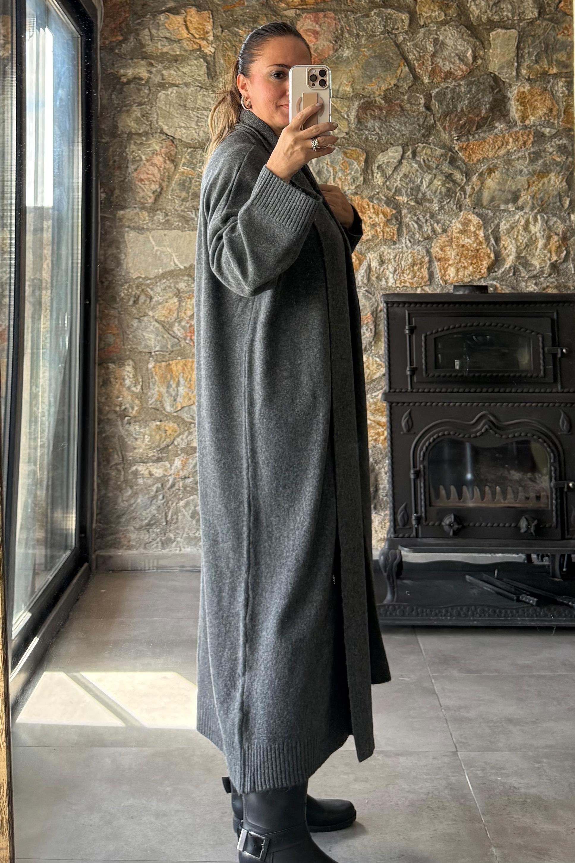 Style Şal Yaka Hırka Antrasit