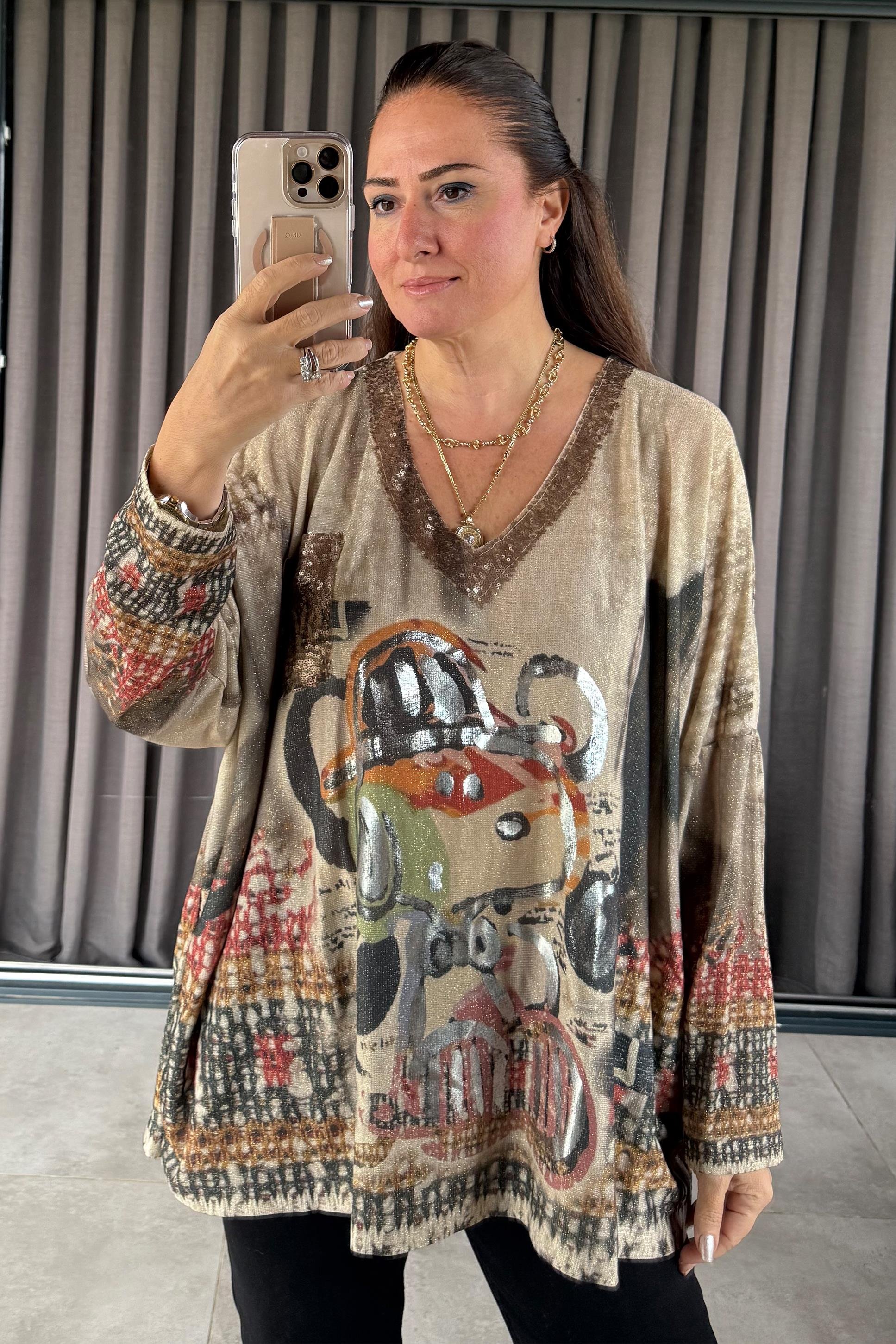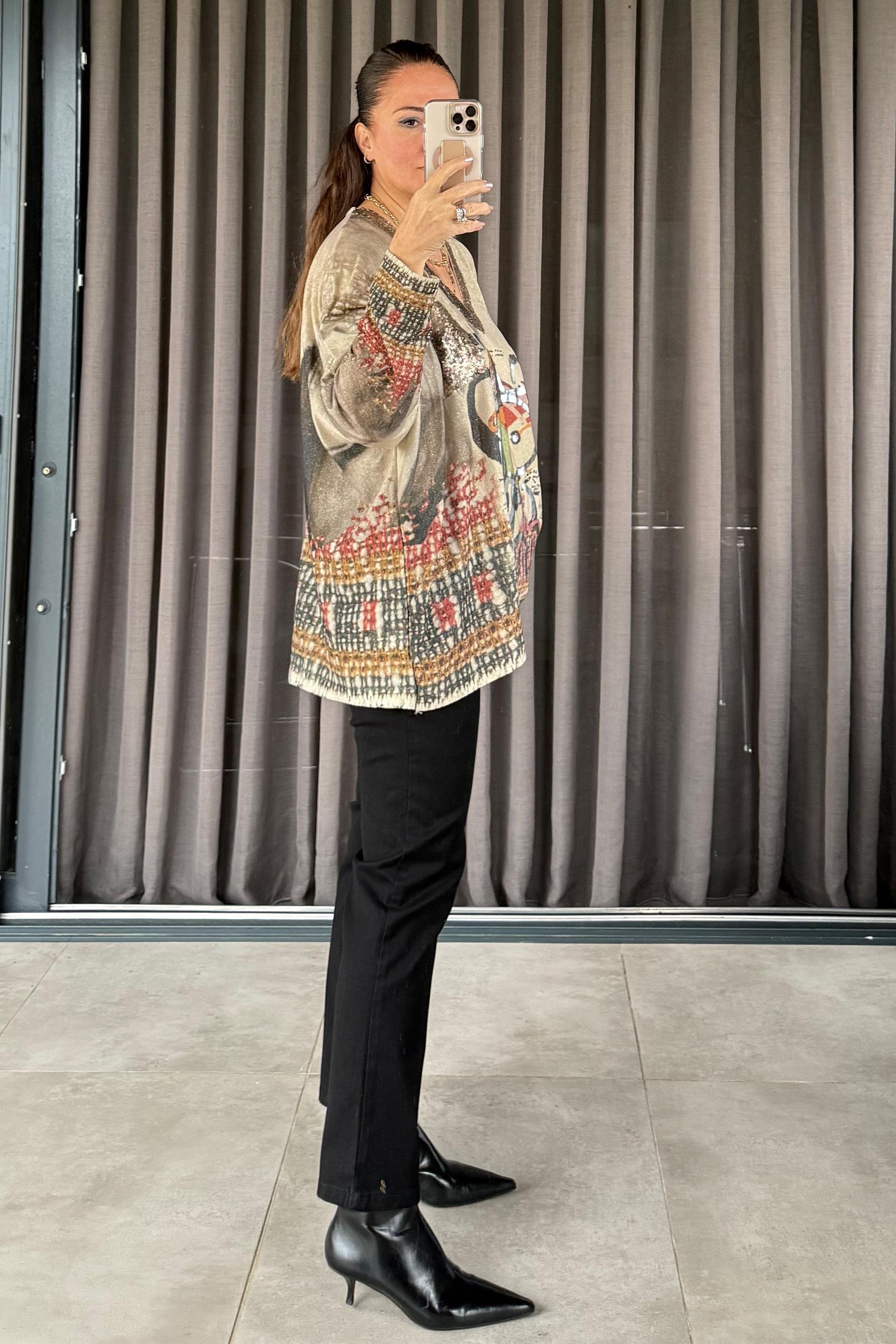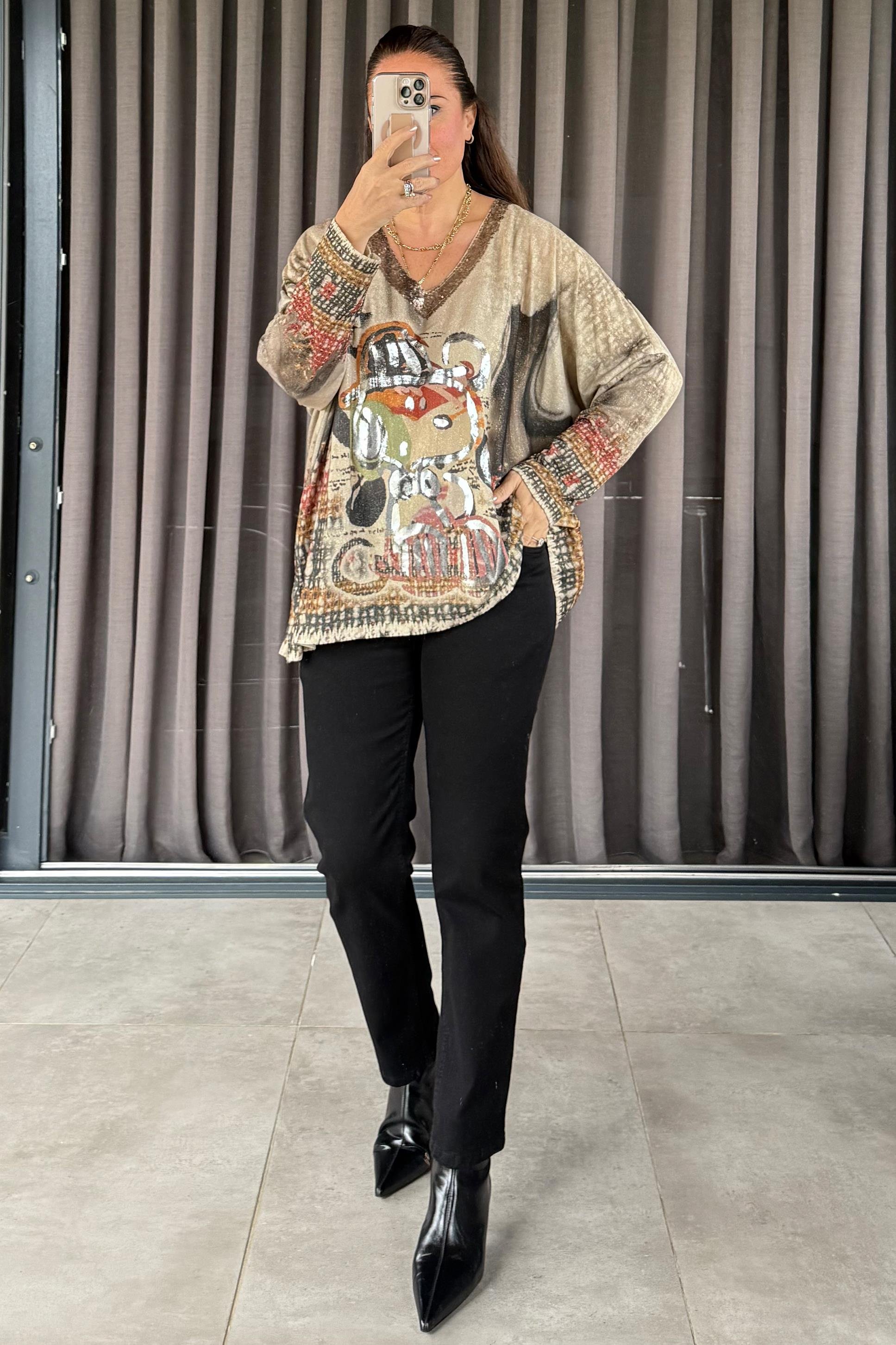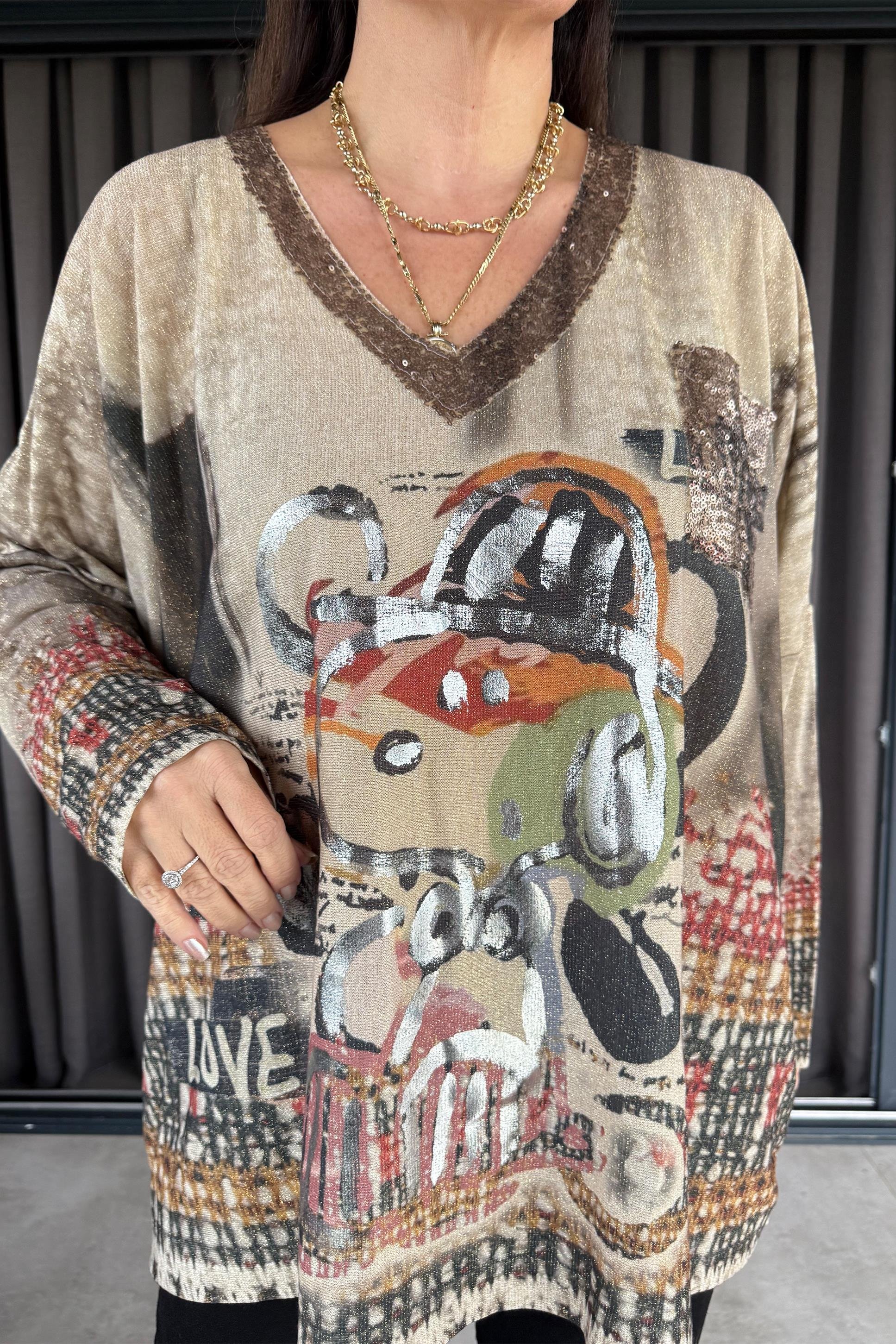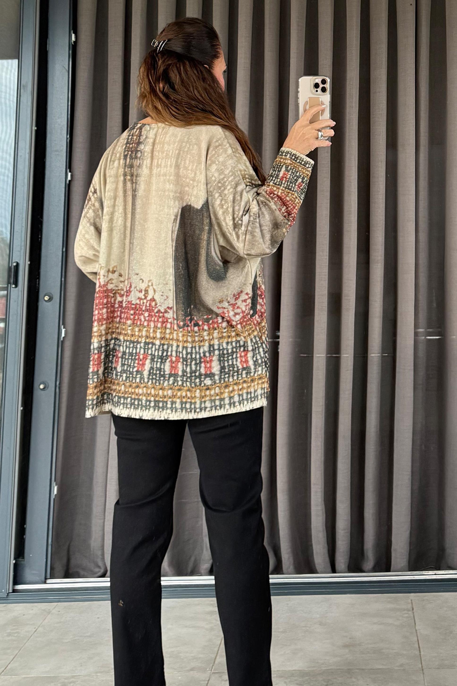 Talia Figürlü Triko Bluz Bej