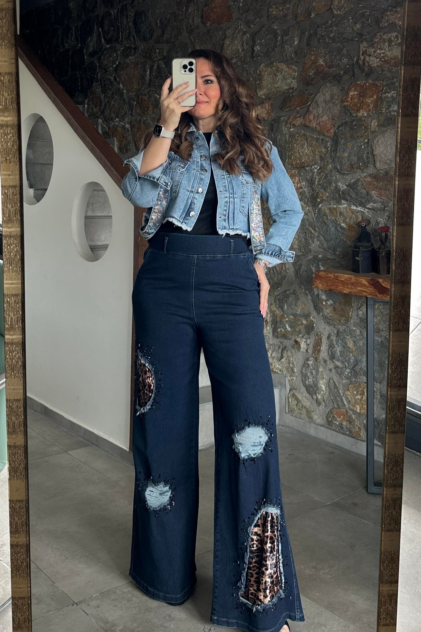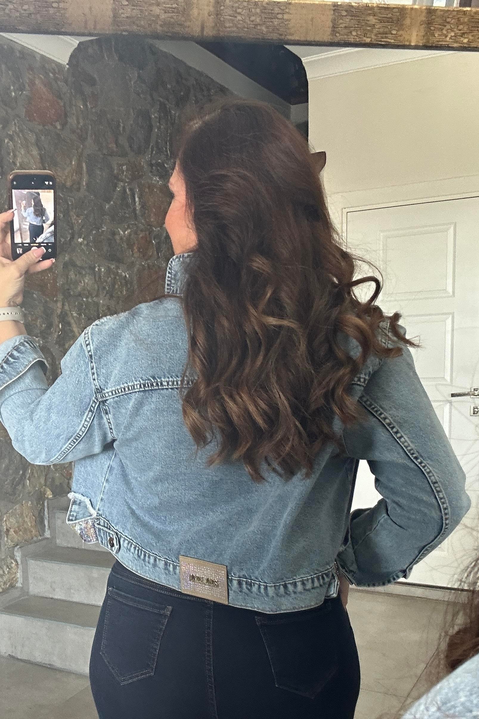 Taşlı Tasarım Kot Ceket Mavi (CKT063-MAVİ)