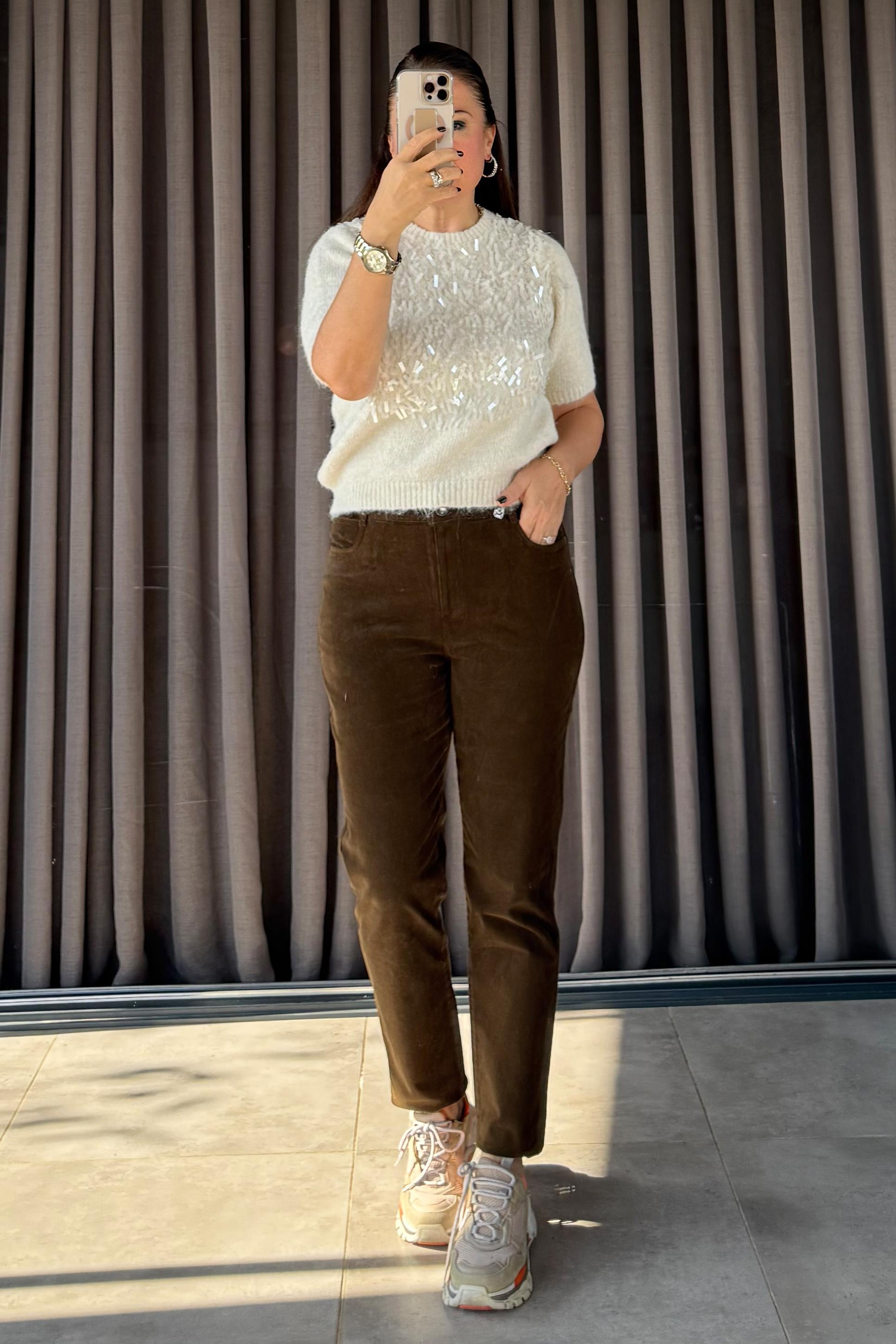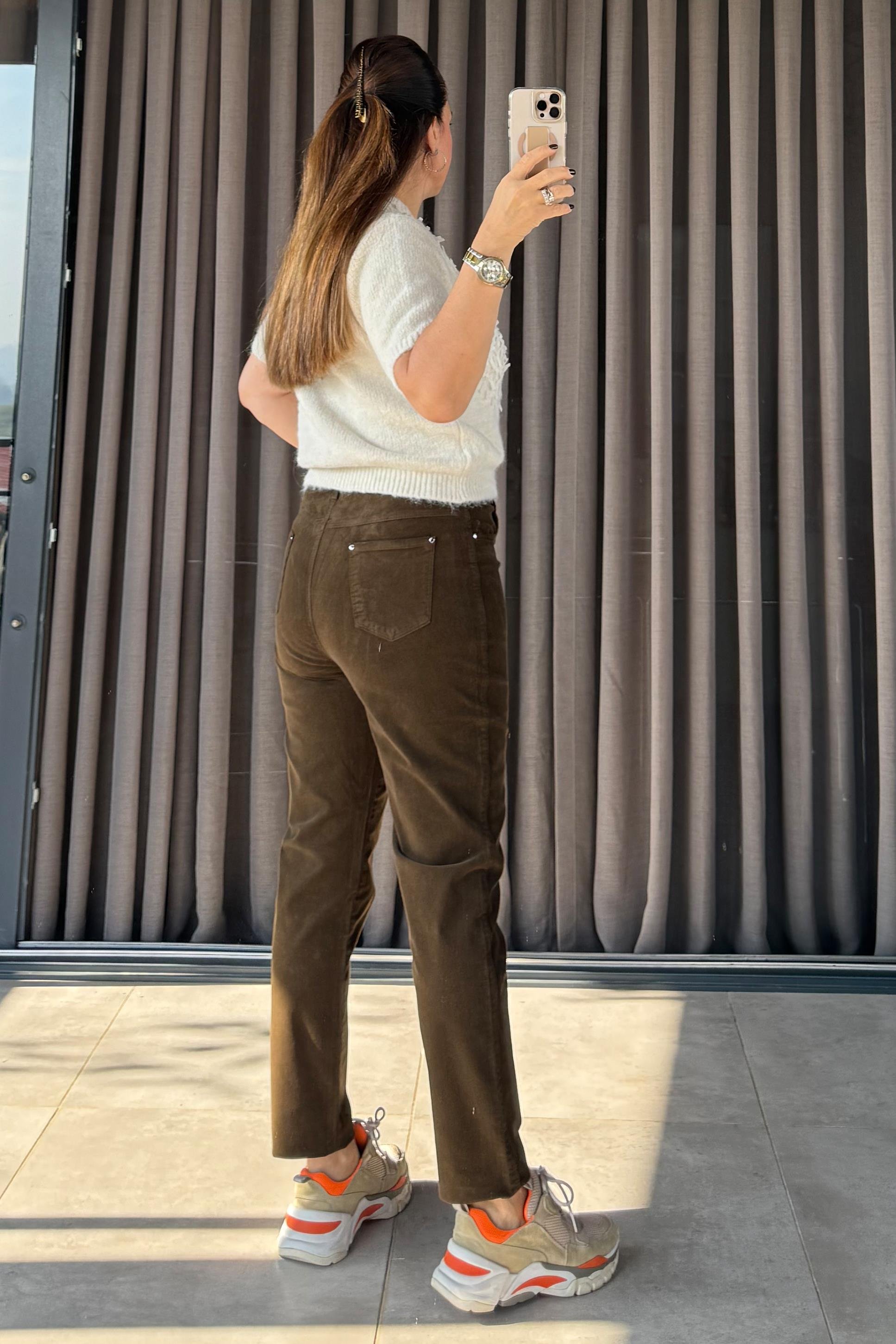 Kadife kumaştır. 42 beden ölçüsü; Bel: 80 cm Basen: 102 cm Boy: 102 cm