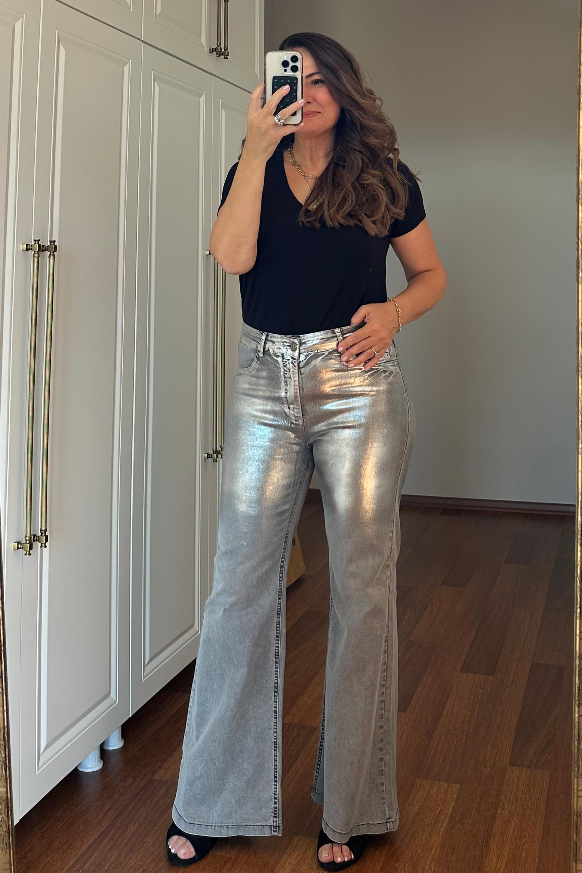 Viru Varaklı İspanyol Paça Kot Pantolon Gri