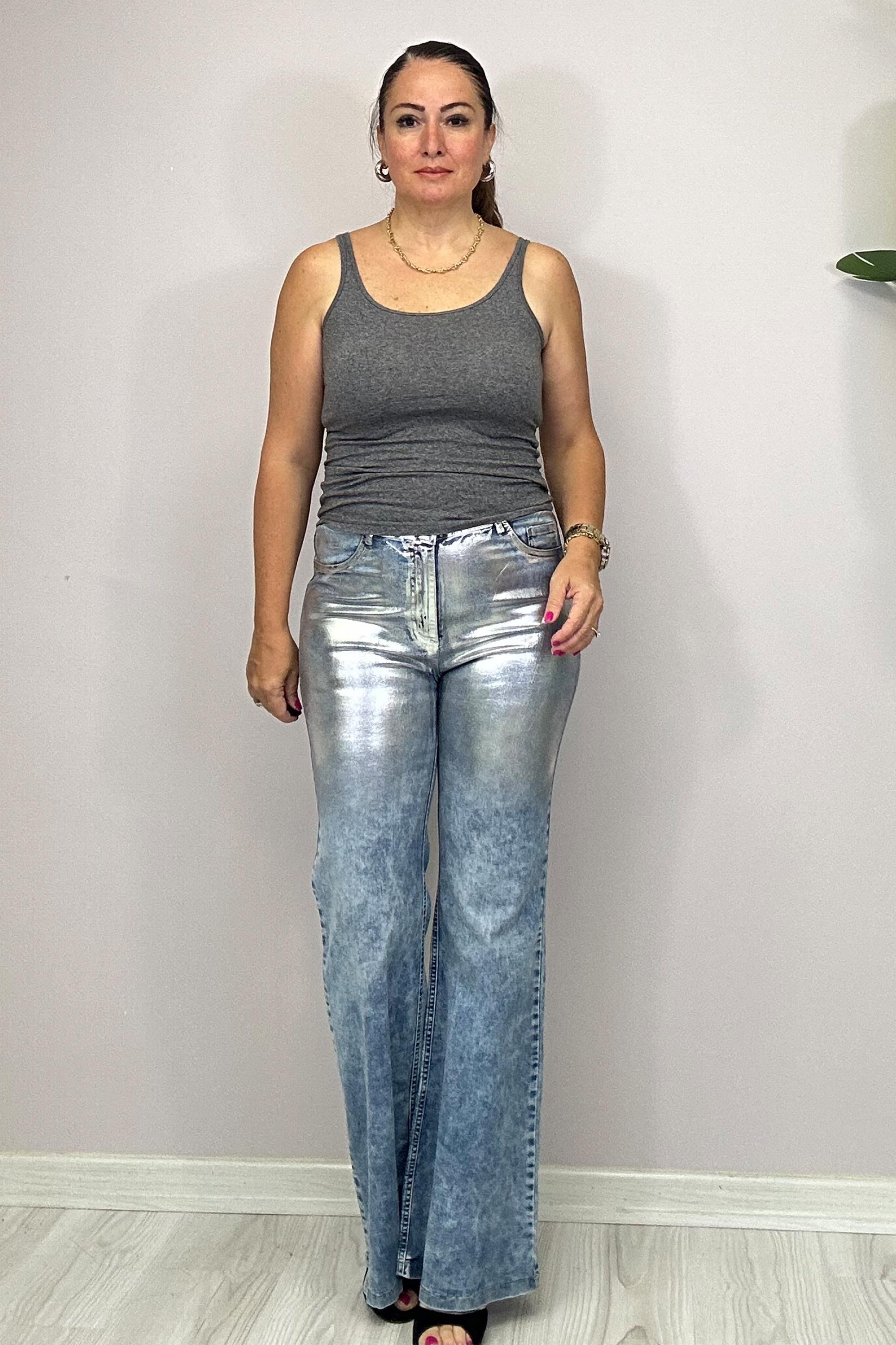 Viru Varaklı İspanyol Paça Kot Pantolon Mavi